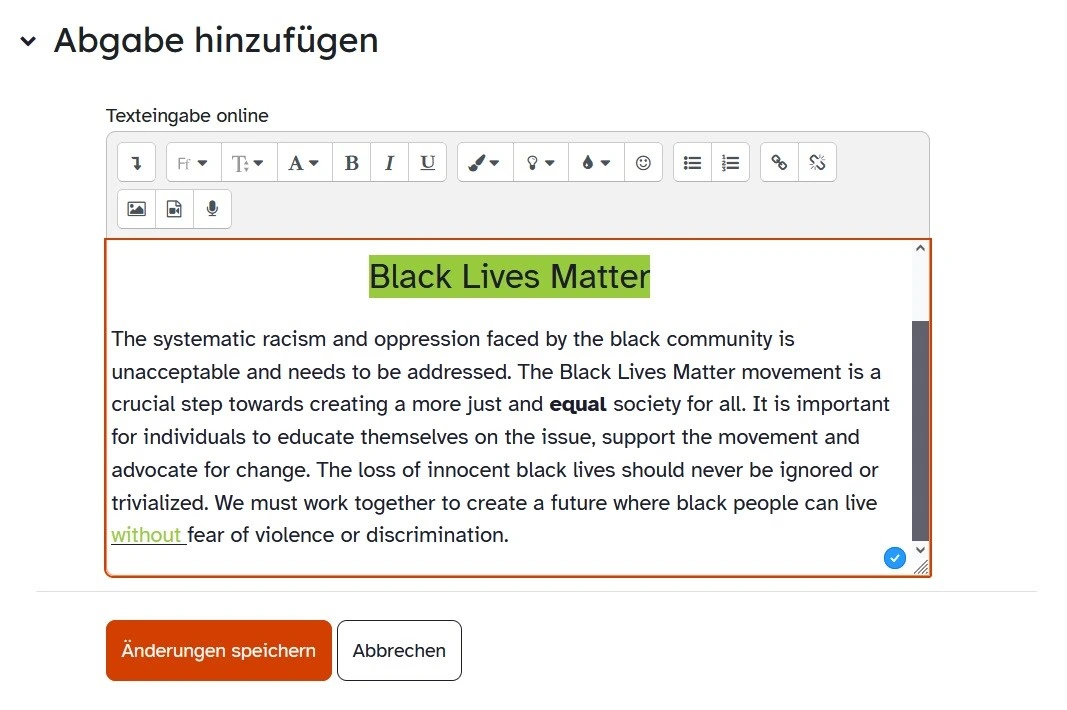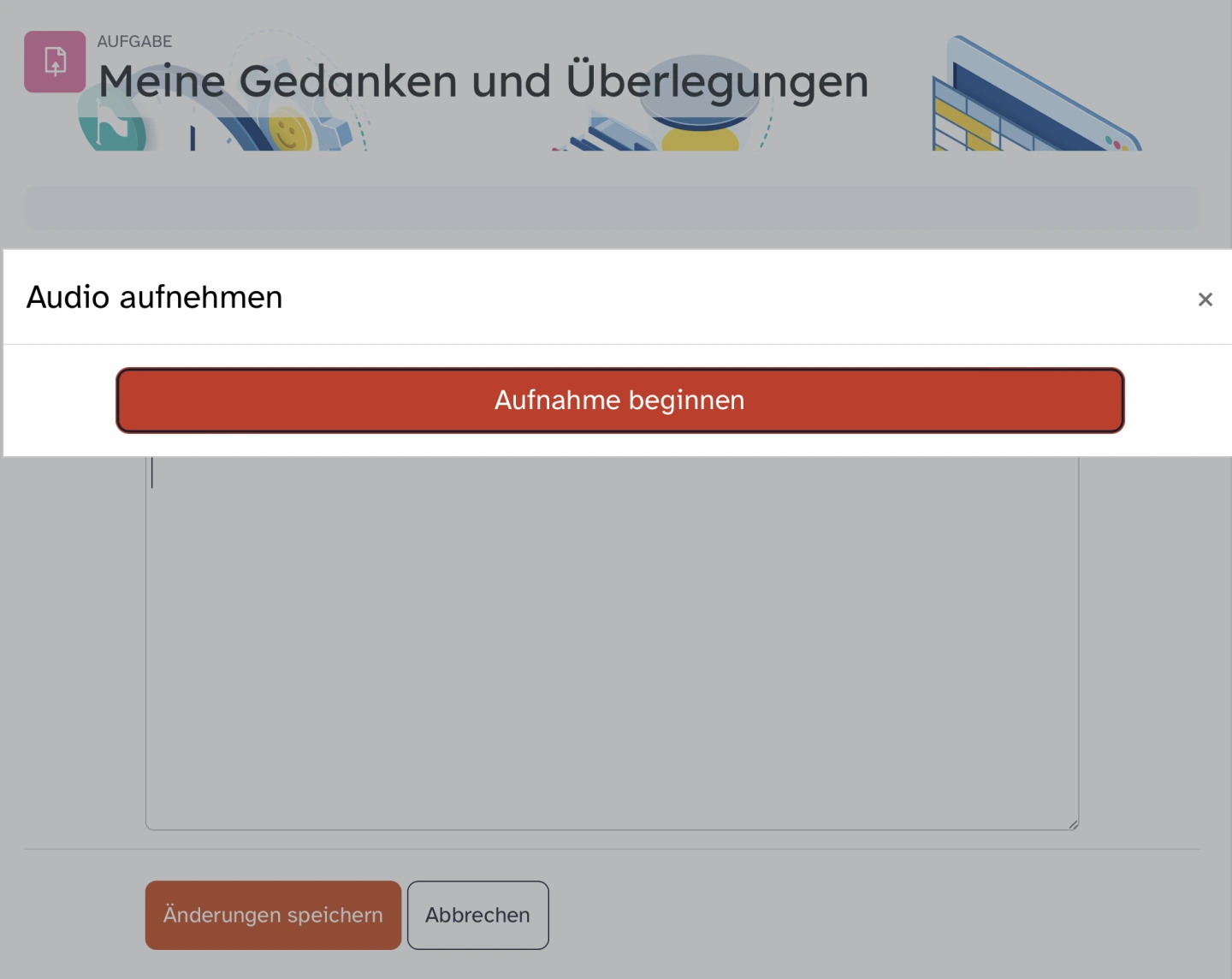 Je nach Aufgabentyp und Einstellung vonseiten der Lehrkraft können Lernende beliebige digitale Inhalte einreichen, aber auch direkt in der Aktivität Audios aufnehmen und geforderte Lösungstexte schreiben.