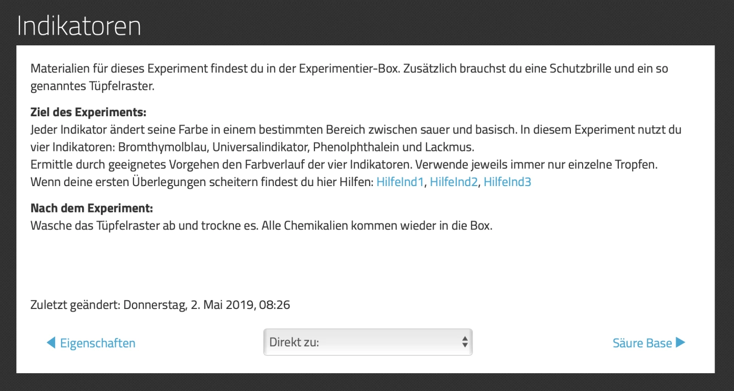 Um zu erfahren, wie andere Lehrkräfte abgestufte Lernhilfen einsetzen, können Sie sich Beispielkurse auf teachSHARE ansehen. Die Kurse sind als Kopie direkt für Ihren Unterricht einsetzbar. Sie können aber auch als Anregung für eigene Projekte dienen. Zwei Beispiele aus dem Fach Chemie sowie eine Kursbeschreibung finden Sie über die nachfolgenden Links.