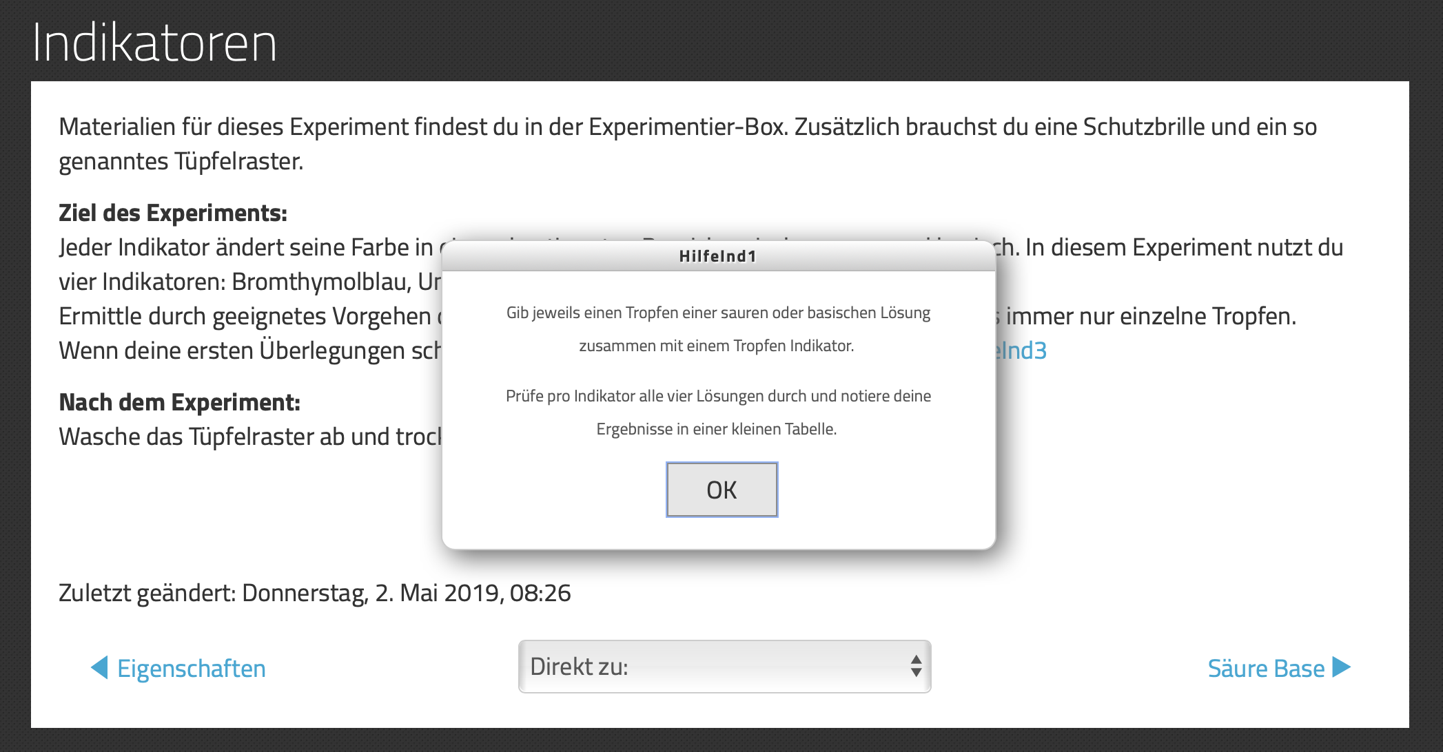 Um sicherzustellen, dass Hilfestellungen nur an der gewünschten Stelle verlinkt werden, empfiehlt es sich, einzigartige Begriffe zu verwenden, wie im Beispiel HilfeInd1. Dieser Begriff wurde bewusst gewählt, da er in dieser Form nur ein einziges Mal im Kurs vorkommt - unerwünschte Verlinkungen entstehen auf diese Weise nicht.