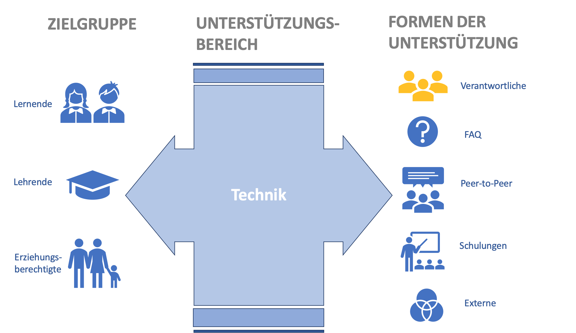 Beim Einsatz von digitalen Endgeräten können immer wieder Probleme auftauchen, bei denen Schülerinnen und Schüler, Erziehungsberechtigte und Lehrkräfte Unterstützung benötigen. Ein breit gefächertes Unterstützungsangebot hilft dabei, den Unterrichtsbetrieb für alle aufrechtzuerhalten und den Lernprozess effektiv zu gestalten.