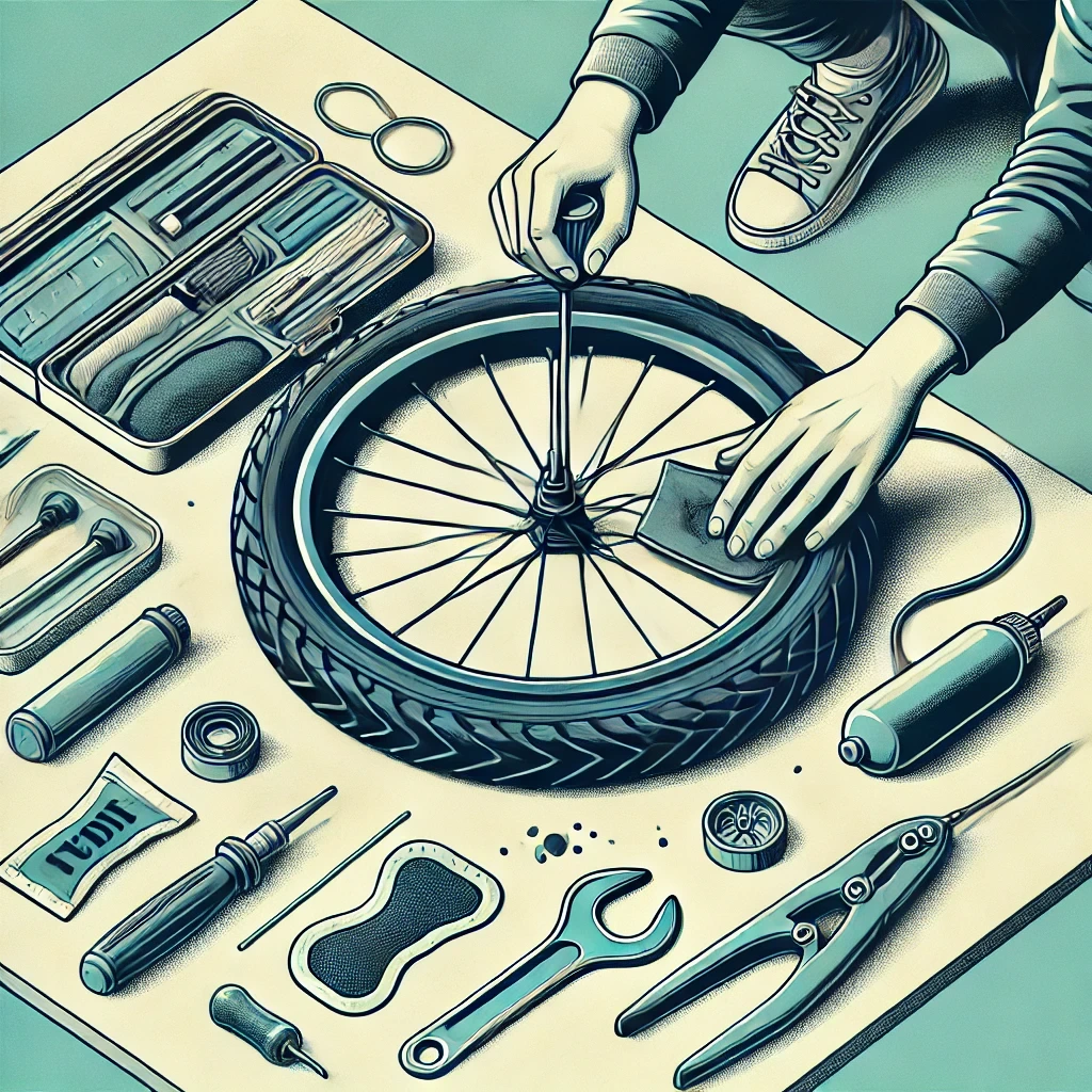 Fritzi hat einen platten Reifen an ihrem Fahrrad. Ihre Aufgabe ist es, ihn zu reparieren.