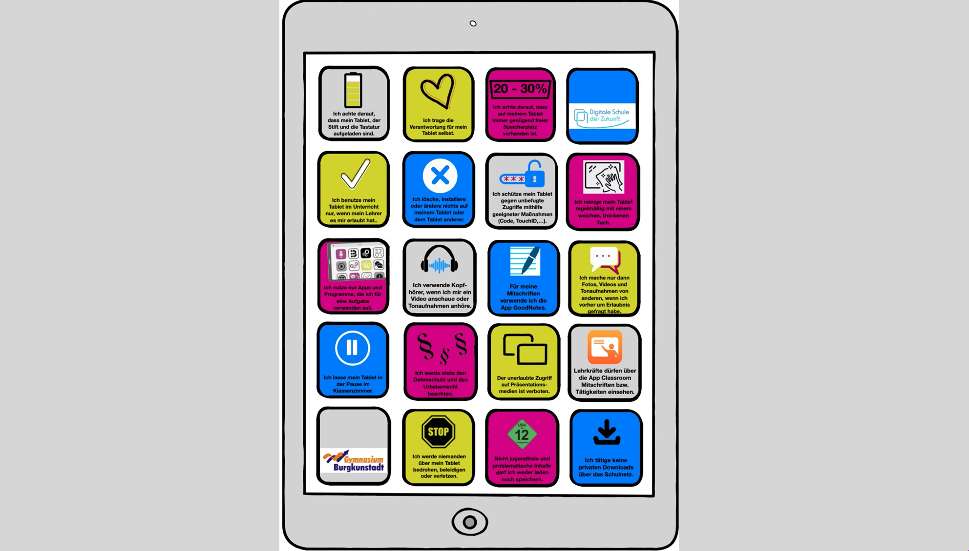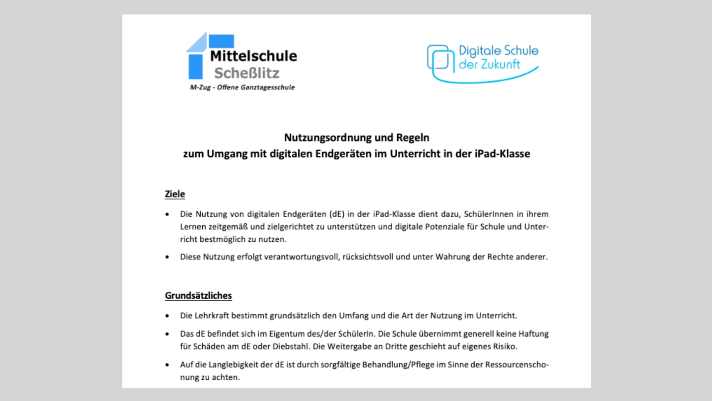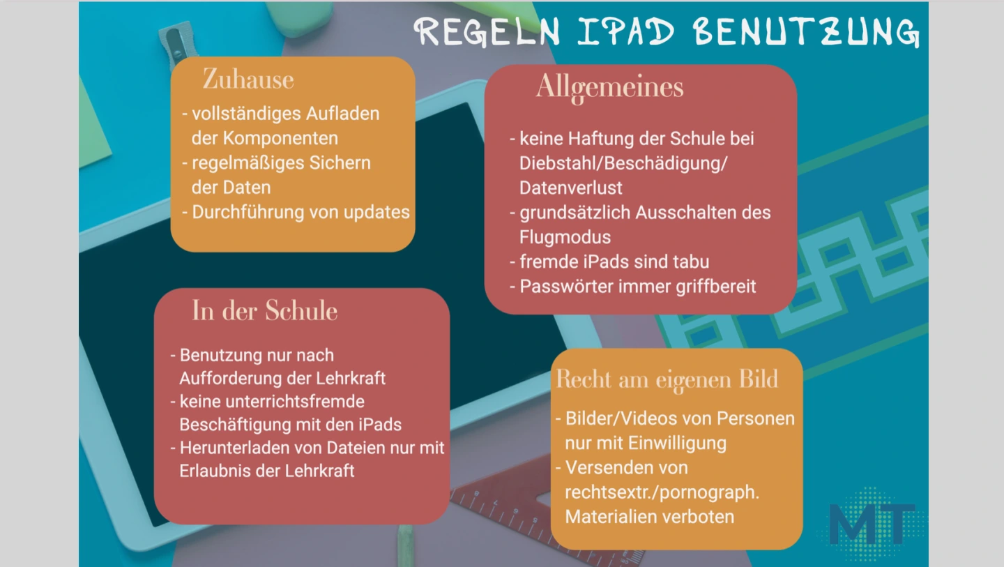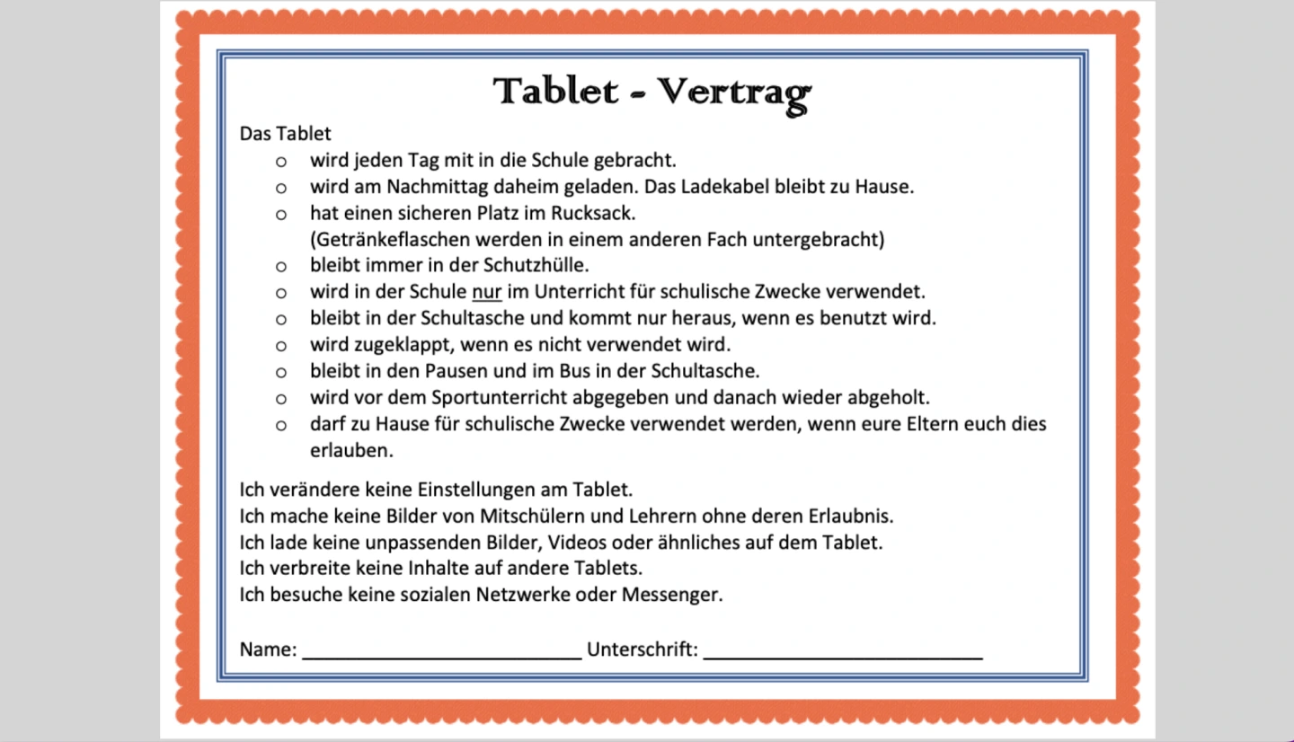 Neben den gesetzlichen Vorgaben kann jede Schule individuell Regeln zur Nutzung der digitalen Endgeräte erarbeiten.
