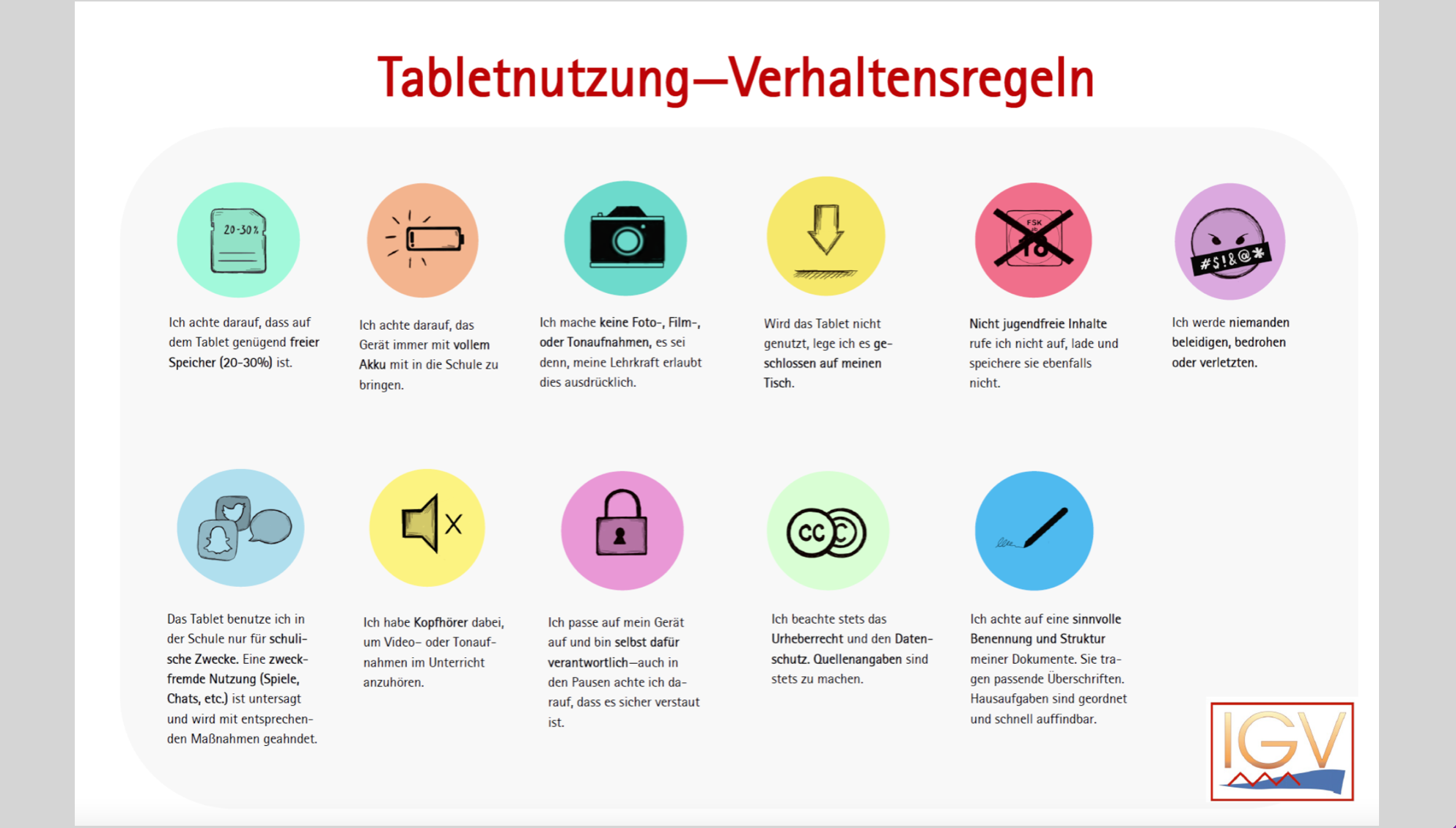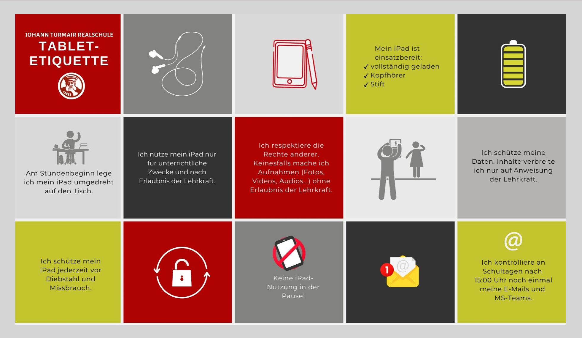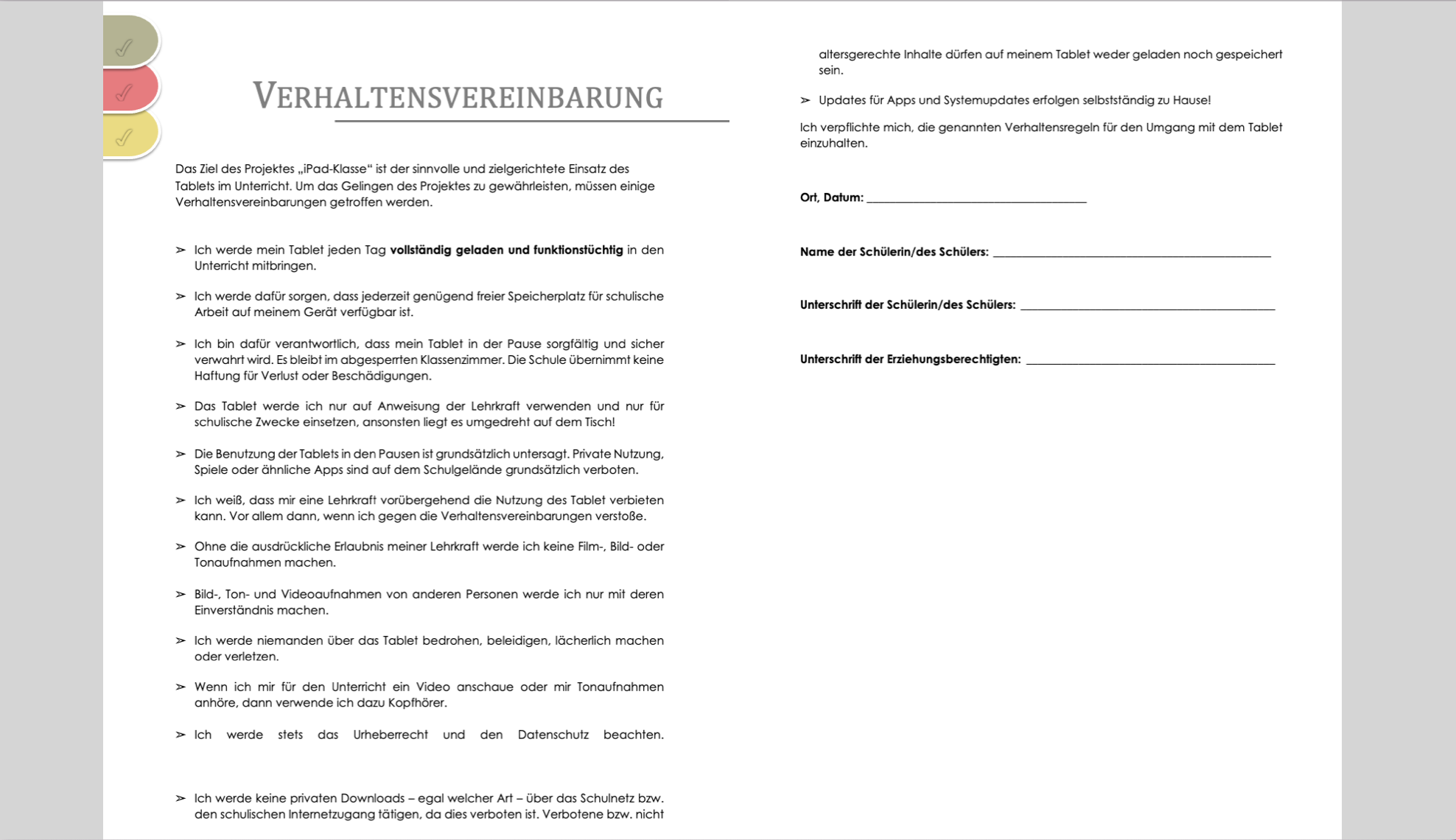 Neben den gesetzlichen Vorgaben kann jede Schule individuell Regeln zur Nutzung der digitalen Endgeräte erarbeiten.