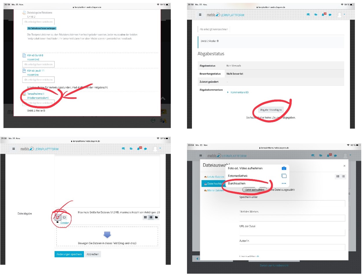 Die erstellten Audiodateien werden z. B. in einem mebis-Ordner zentral hochgeladen. Dort können sie von den Mitschülerinnen und Mitschülern angehört werden. Es ist auch möglich, im mebis-Kurs eine Abstimmung über das beste Ergebnis zu initiieren. Dieses kann dann als Einstieg für die nächste Unterrichtsstunde verwendet werden.