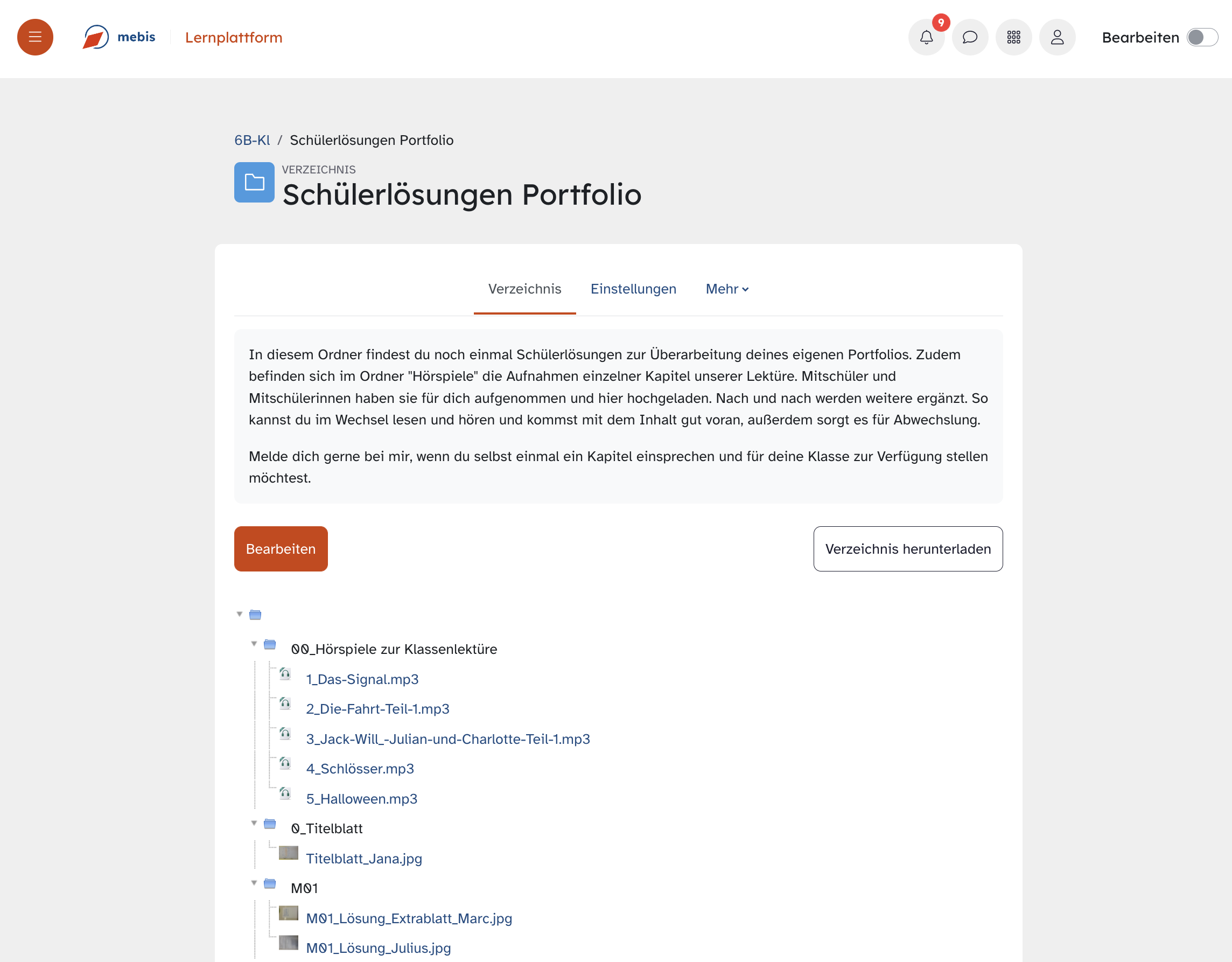 Die Aufnahmen werden der Klasse z. B. über eine Lernplattform zur Verfügung gestellt. Die Lehrkraft entscheidet, ob die Hörspielautorinnen- und autoren ihren Beitrag selbsttätig hochladen dürfen, oder ob der jeweilige Audiobeitrag zuvor möglicherweise einer Qualitätsprüfung unterzogen werden soll. Im zweiten Fall lädt die Lehrkraft im Anschluss an die Prüfung die entsprechende Datei hoch.