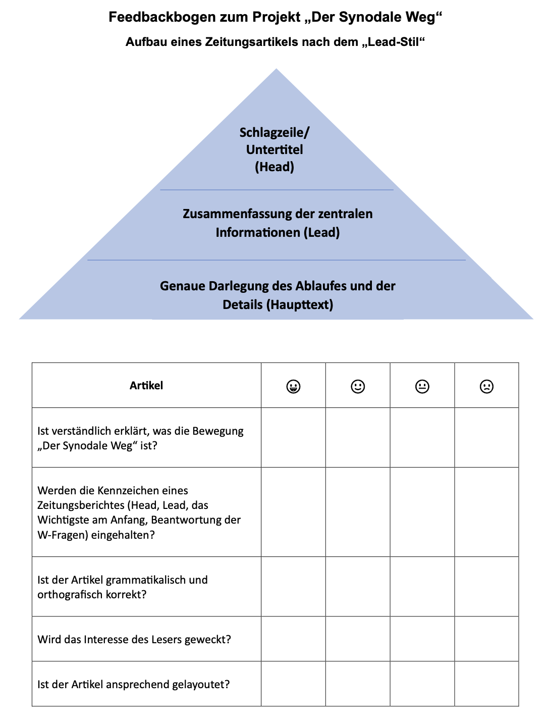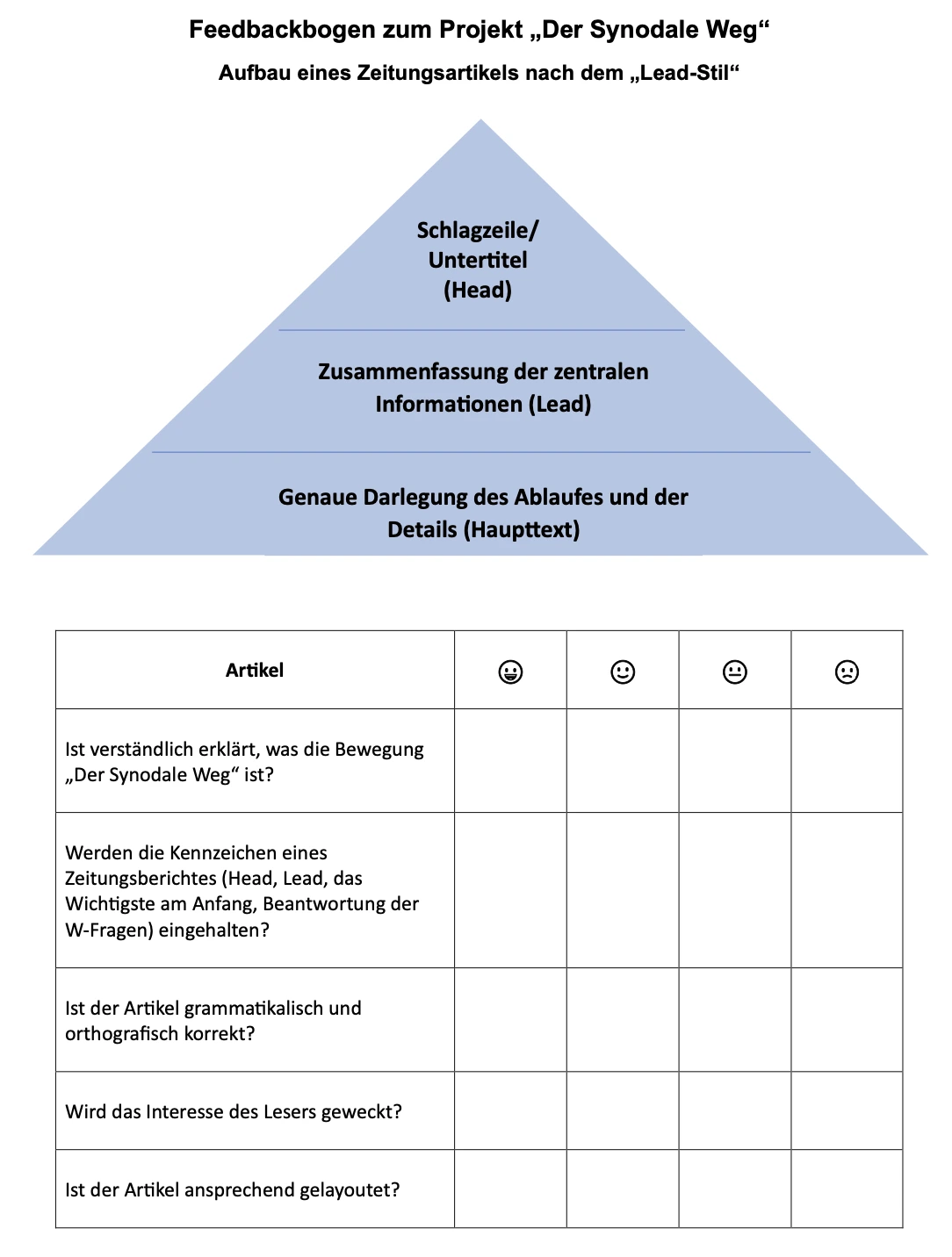 Das vorliegende Projekt ist auf das Thema „Der Synodale Weg“ zugeschnitten.