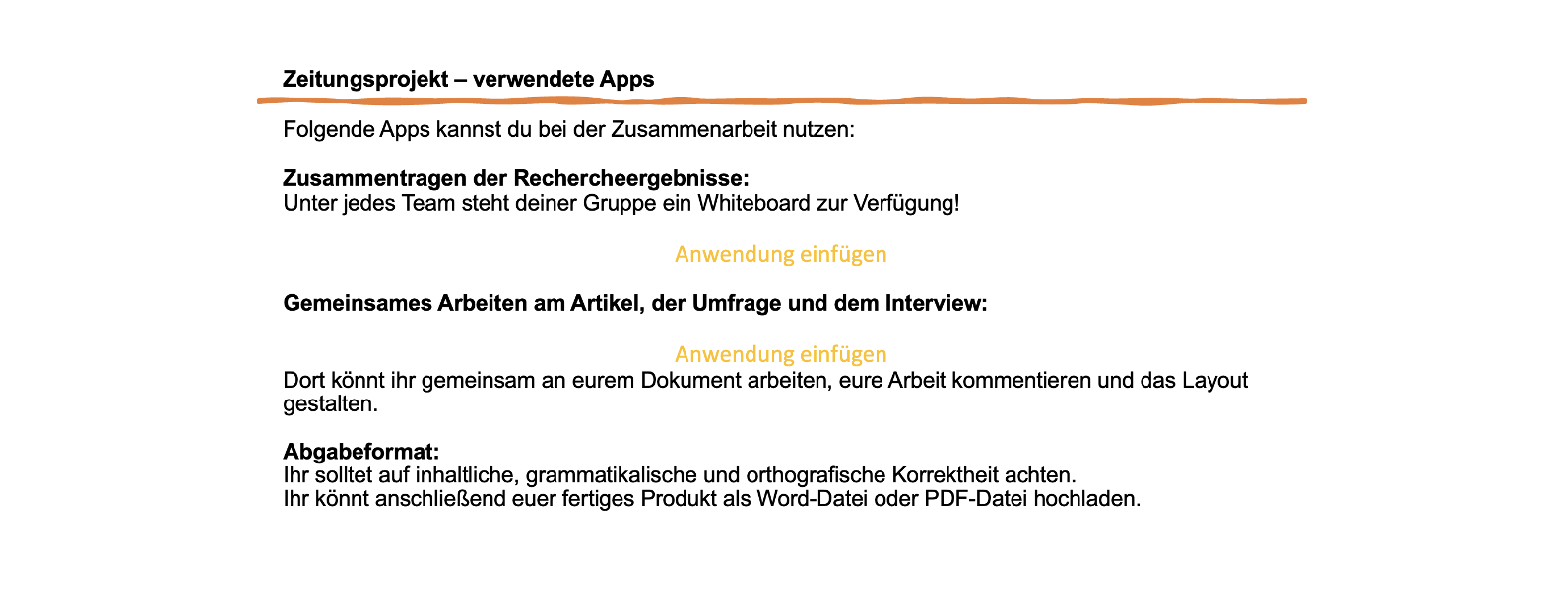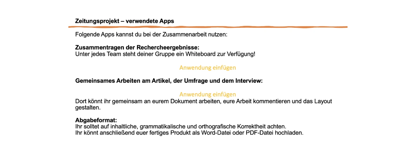Für die Erstellung des Artikels müssen die Schülerinnen und Schüler die Textverarbeitungsprogramme bzw. einen Texteditor kollaborativ nutzen.