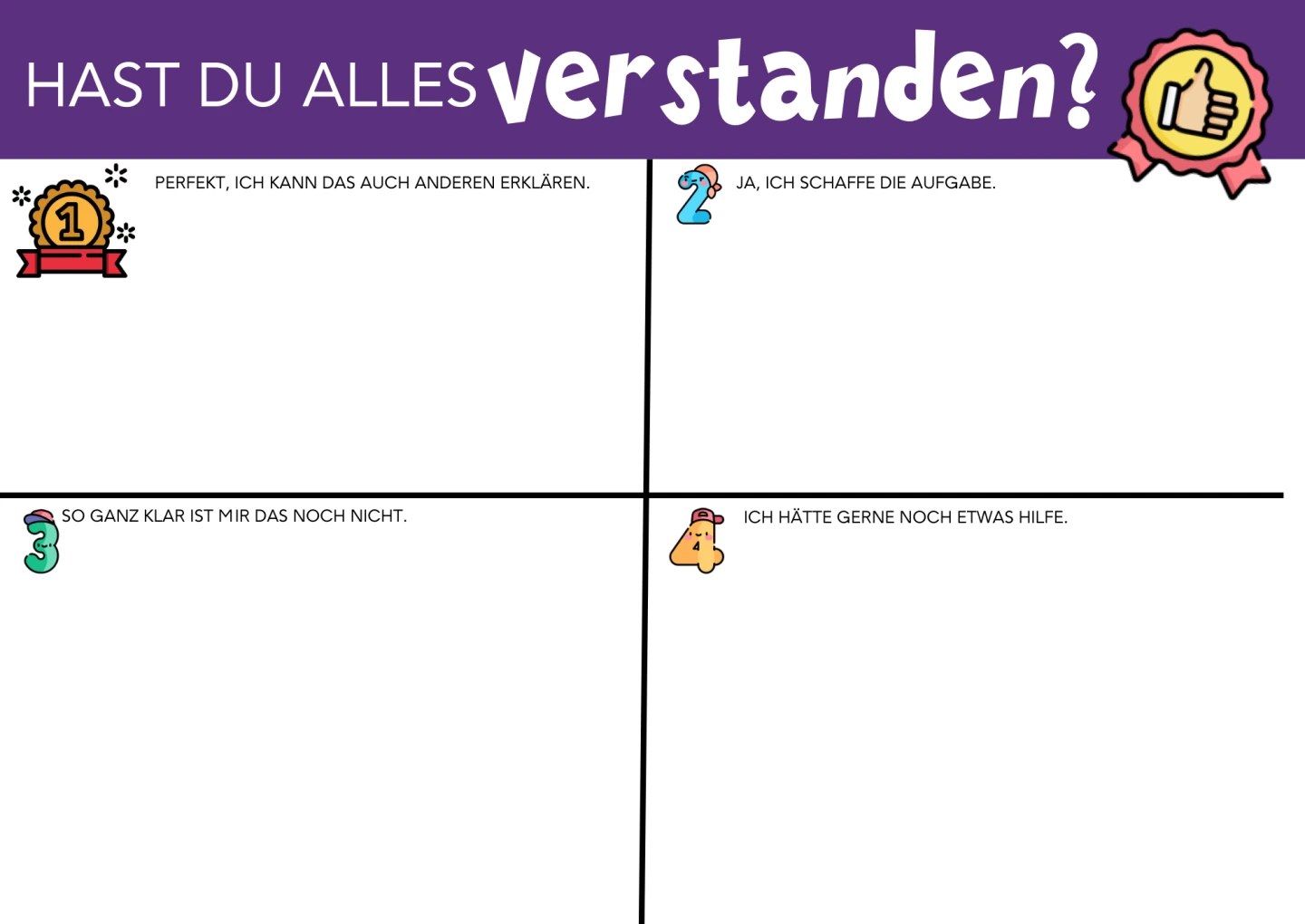 In einer Welt, die sich rasant weiterentwickelt, ist es wichtig, den Lernenden Werkzeuge zur Verfügung zu stellen, die ihnen helfen, ihre Gedanken zu verbalisieren. Die folgenden Board-Dateien bieten die Möglichkeit, Schülerinnen und Schüler dazu zu ermutigen, ihre Gedanken und Gefühle zu teilen, ihre Ziele zu definieren und mögliche Lösungen für Herausforderungen zu finden. Durch die kollaborative Nutzung der Board-Vorlagen können die Lernenden sich gegenseitig unterstützen und voneinander lernen.