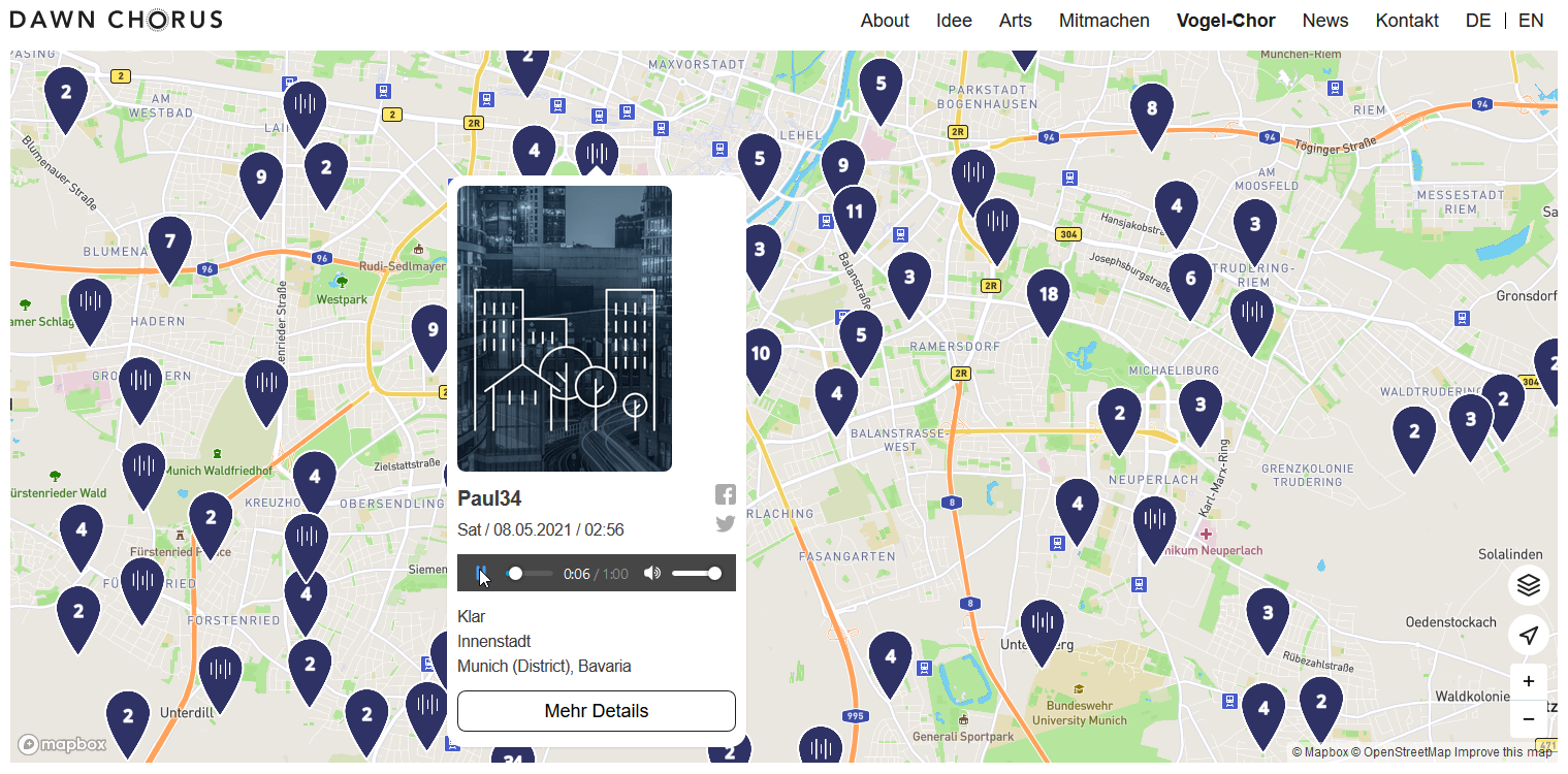 Ziel dieses Projekts ist es morgendlichen Vogelgesang aufzunehmen und für zukünftige Kunst- und Wissenschaftsprojekte zur Verfügung zu stellen. Die so gewonnenen Daten werden wissenschaftlich genutzt, um mit Hilfe des Vogelgesangs die Biodiversität in unterschiedlichen Ökosystemen über viele Jahre hinweg zu dokumentieren.
