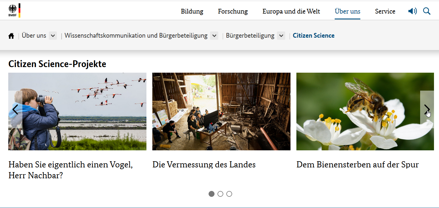 Im Folgenden werden einzelne Citizen Science Projekte beispielhaft vorgestellt.