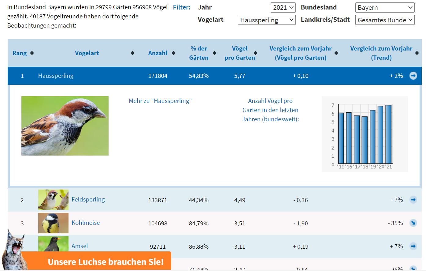 Die Stunde der Wintervögel ist eine der wohl bekanntesten Mitmachaktionen, die auch an vielen Schulen Bayerns durchgeführt wird. In einem festgelegten Zeitraum von wenigen Tagen im Winter sind in der vom Landesbund für Vogelschutz initiierten Aktion alle interessierten Bürgerinnen und Bürger aufgerufen, die Anzahl der Vogelarten im Garten über eine Stunde hinweg zu beobachten und zu melden. Die Aktion wird genauso wie die Stunde der Gartenvögel seit 2005 durchgeführt.