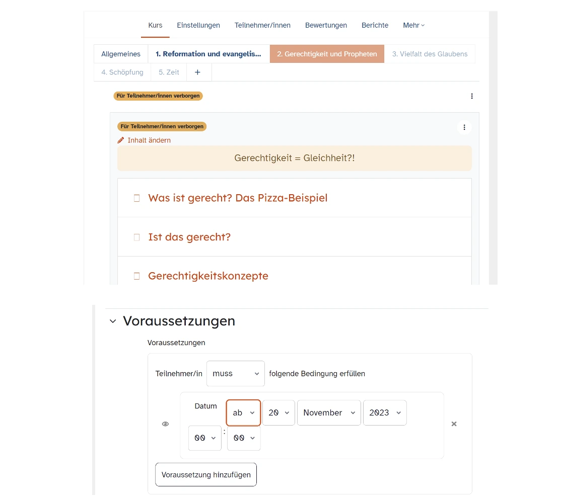 „Über mebis kann ich als Lehrkraft gezielt steuern, zu welchem Zeitpunkt einzelne Inhalte für die Lernenden zu sehen sind. So kann ich meinen Unterricht schon im Vorfeld frühzeitig vorbereiten, die Inhalte aber erst nach und nach freigeben. Man kann zudem technisch einstellen, wann einzelne Inhalte zu sehen sind. Das ist ein Vorteil für meine konkrete Stundenplanung. Je nachdem, welche Voraussetzungen ich einstelle, sind Inhalte und Aufgaben erst zu einer bestimmten Zeit oder erst, wenn andere Aufgaben gelöst wurden, sichtbar."