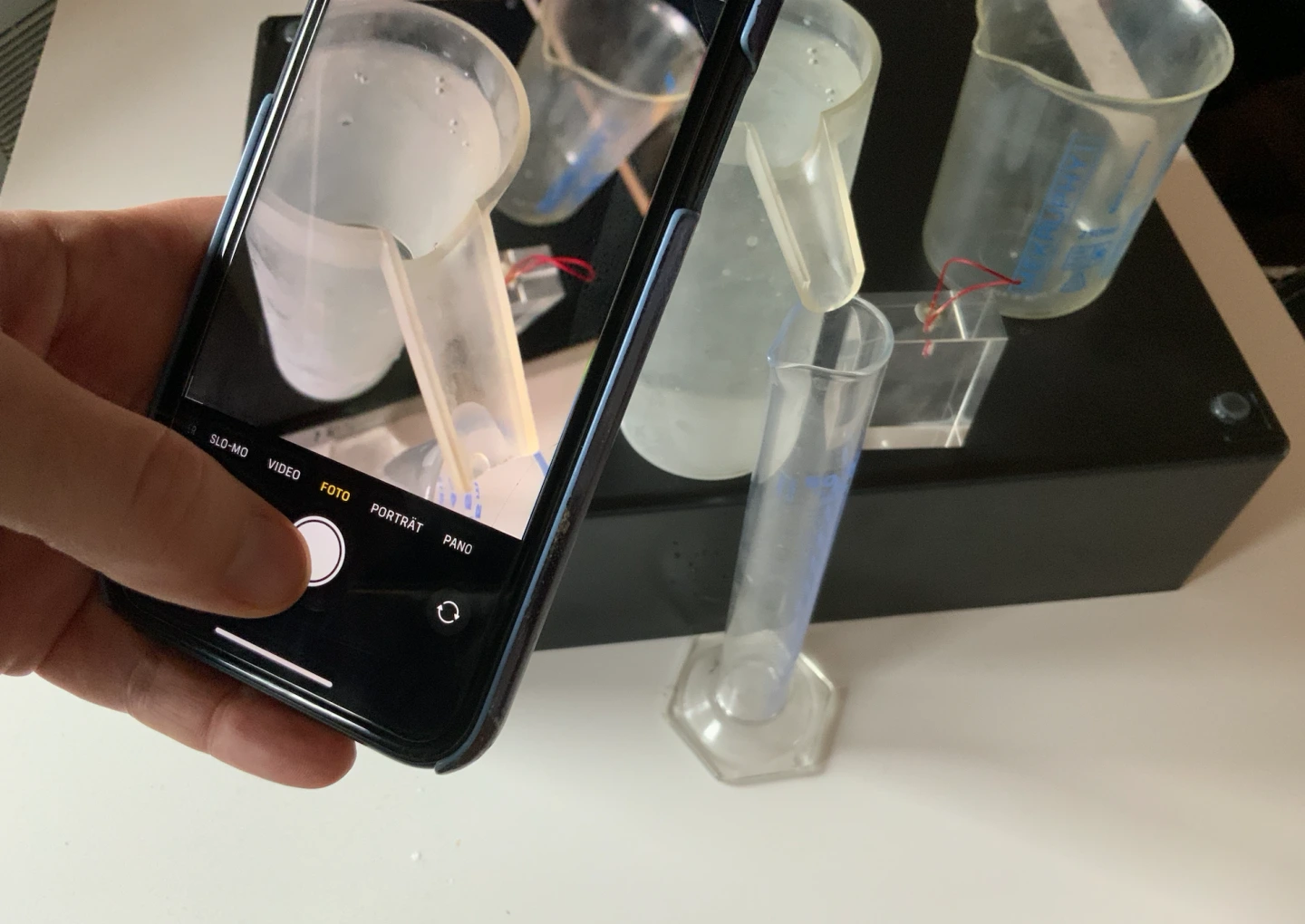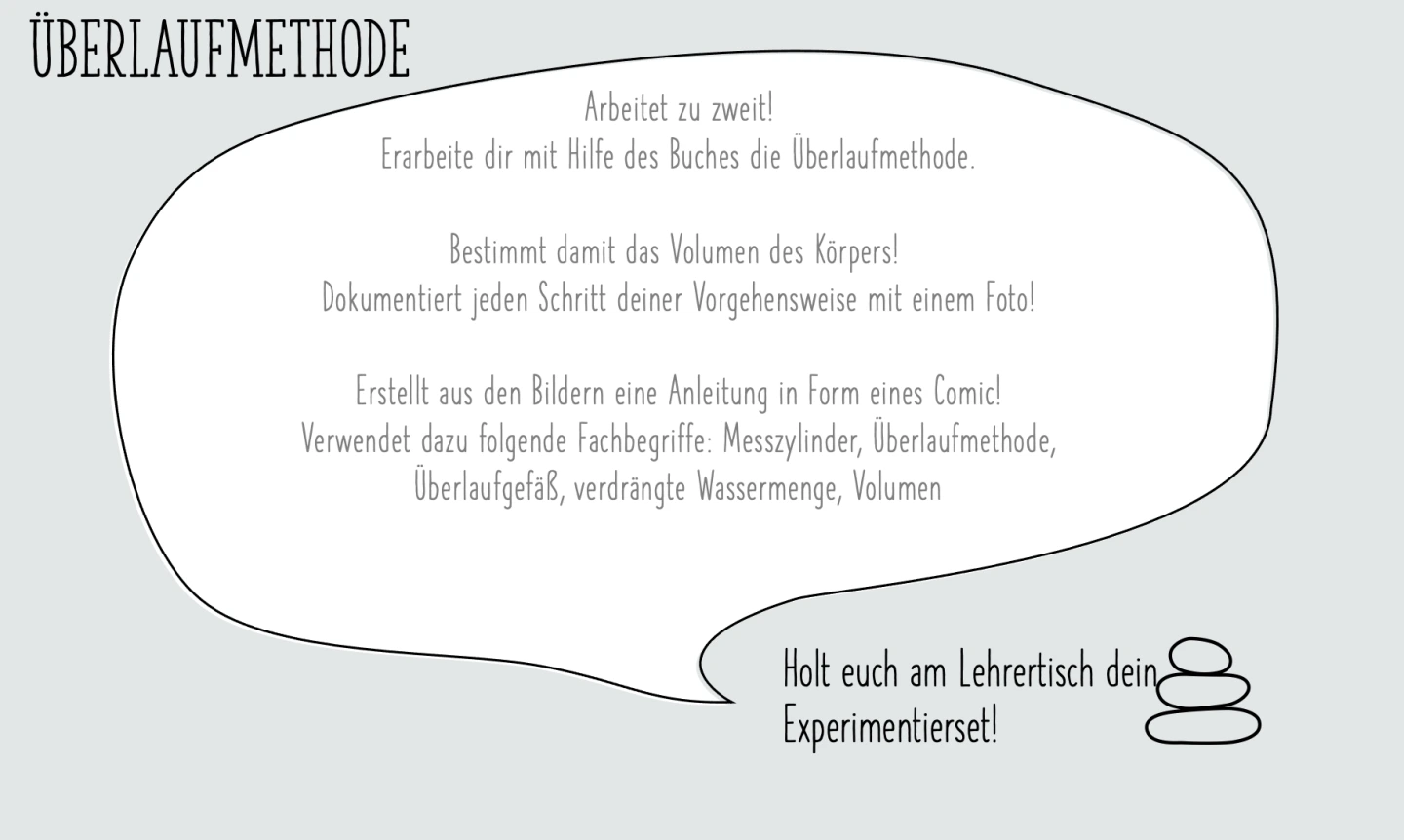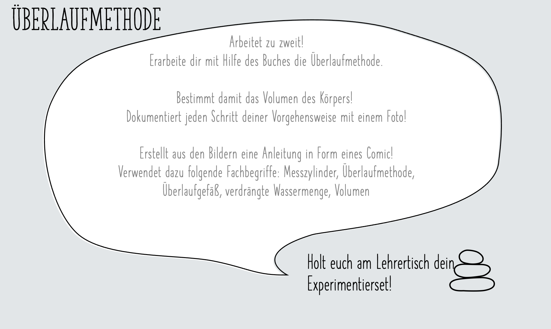 Hier wurde die Vorgangs- bzw. Versuchsbeschreibung (z. B. aus dem Lehrbuch) vorgegeben, mit dem ergänzenden Arbeitsauftrag, einen Comic des Versuchs zu erstellen.