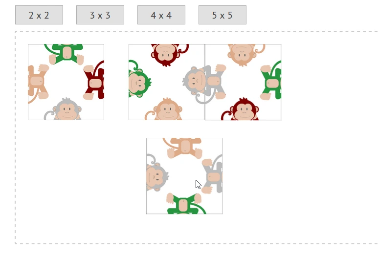 Das Affenpuzzle besteht aus quadratischen Puzzleelementen, welche jeweils zu einem einheitlich gefärbten Affen zusammengesetzt werden müssen. Bei einem Puzzle mit 2x2-Teilen ergeben sich schon 6144 Möglichkeiten. Ein Puzzle mit 3x3-Teilen besitzt bereits über 95 Milliarden Möglichkeiten!