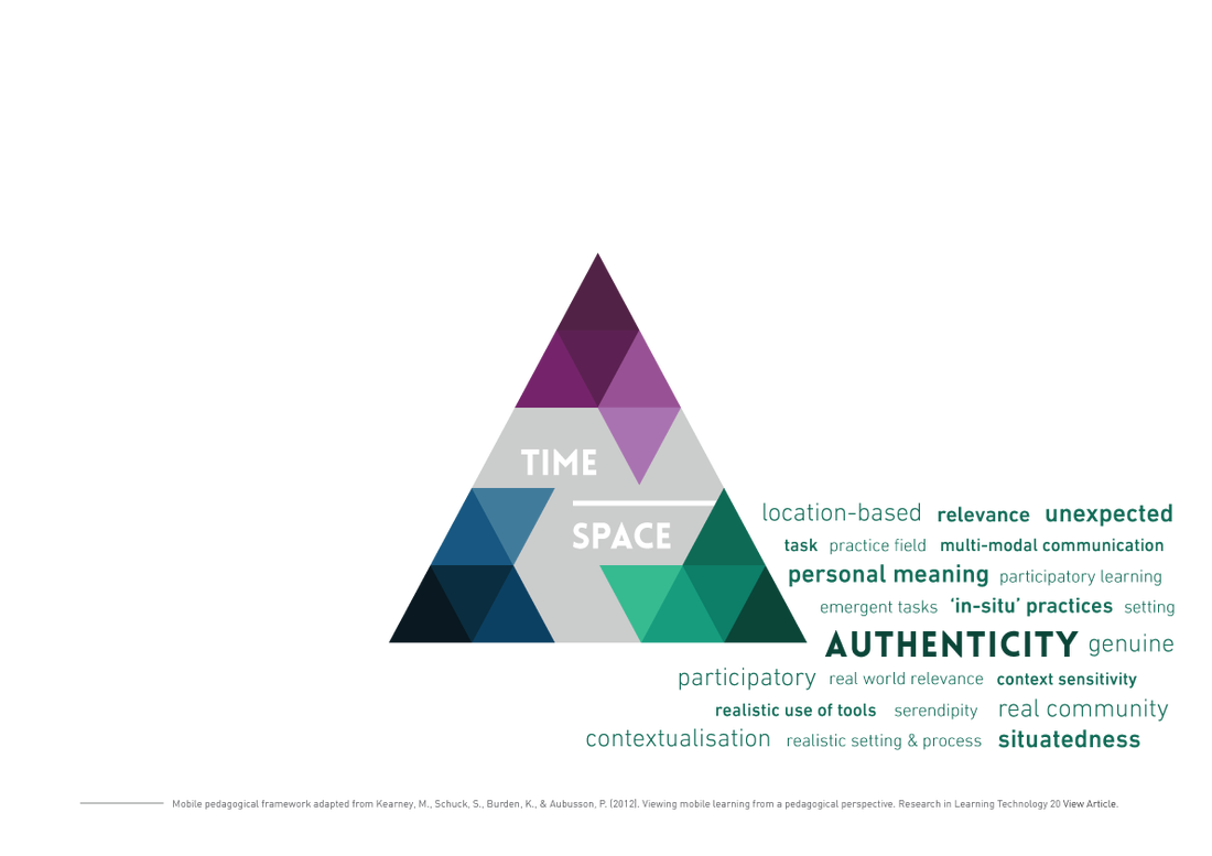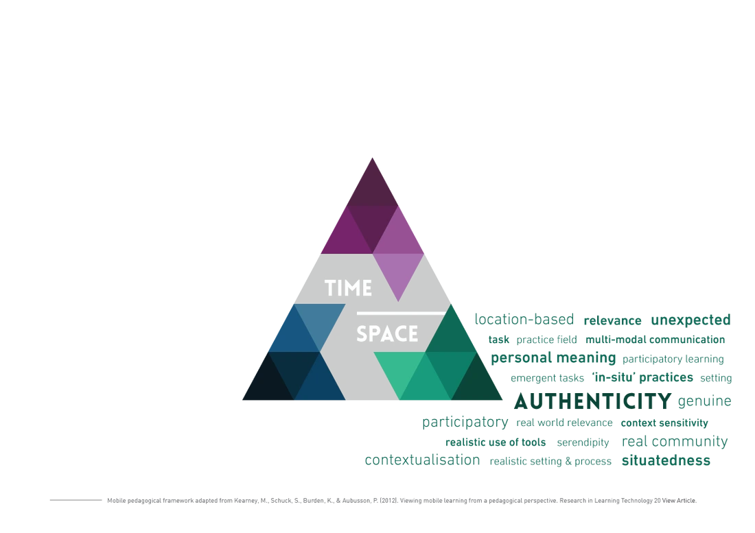 Das oben dargestellte Modell beruht auf „The Mobile Learning Toolkit Manual” von Kearney, Schuck, Burden & Aubusson aus dem Jahr 2012. Aufbauend darauf erschien 2020 von Kearney, Schuck und Burden „Theorising and Implementing Mobile Learning”, welches Teil des neuen Projekts iPAC Mobile Pedagogies (deutsch: iPAC mobile Pädagogik) ist.
