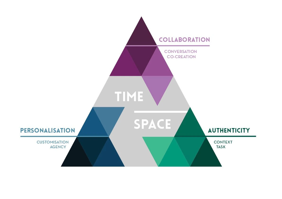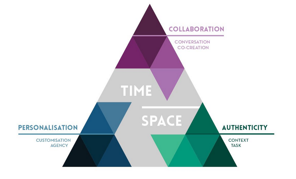 Zentrale Bestandteile sind die Kategorien Personalisierung, Authentizität und Kollaboration, die wiederum in sieben Unterelemente aufgegliedert werden.