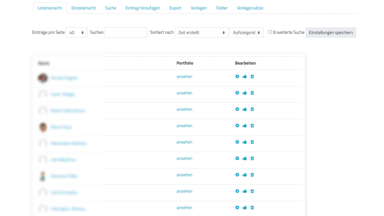 Stellen Sie „Einträge - Erforderliche Einträge vor der Ansicht aller Daten” auf den Wert 1. So muss erst ein eigener Eintrag abgeben werden, bevor die Positionen der anderen Lernenden gesehen werden können.