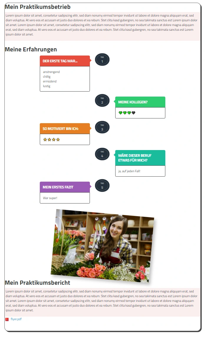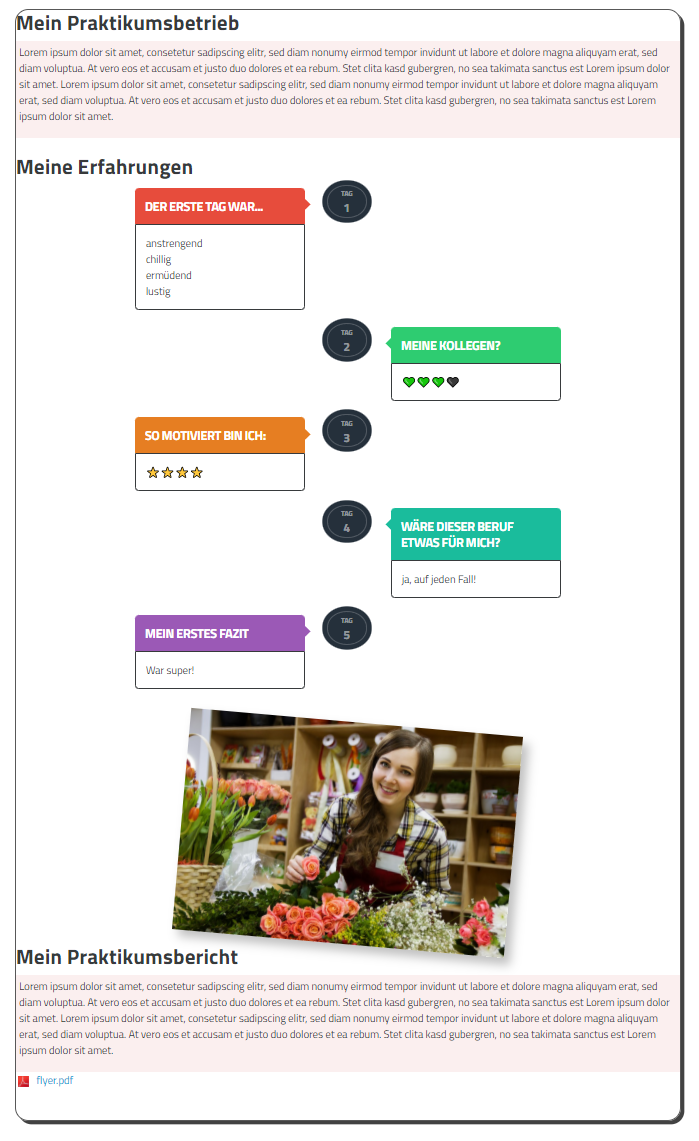 Portfolios sind prozessbegleitend einsetzbar und durch die Verwendung von Textfeldern individuell gestaltbar. Textfelder können multimedial mit Text, Audios, Videos, Grafiken, Fotos oder Links gestaltet werden. Als Lehrkraft können Sie neben den mündlichen Gesprächen auch schriftlich über die Kommentarfunktion den Prozess begleiten. Zugleich werden dadurch Rückmeldungen dokumentiert und protokolliert.