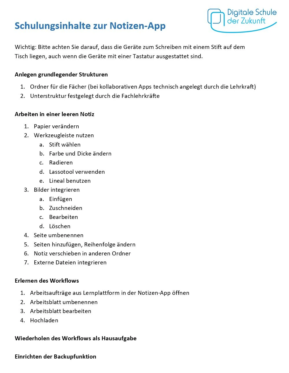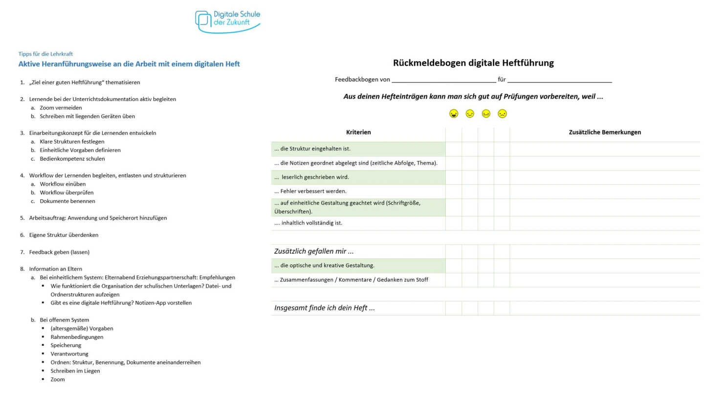 Um die Vorgaben hinsichtlich der Struktur und Nutzung digitaler Hefte zu vermitteln, empfiehlt sich ein Schulungskonzept für die Lernenden.