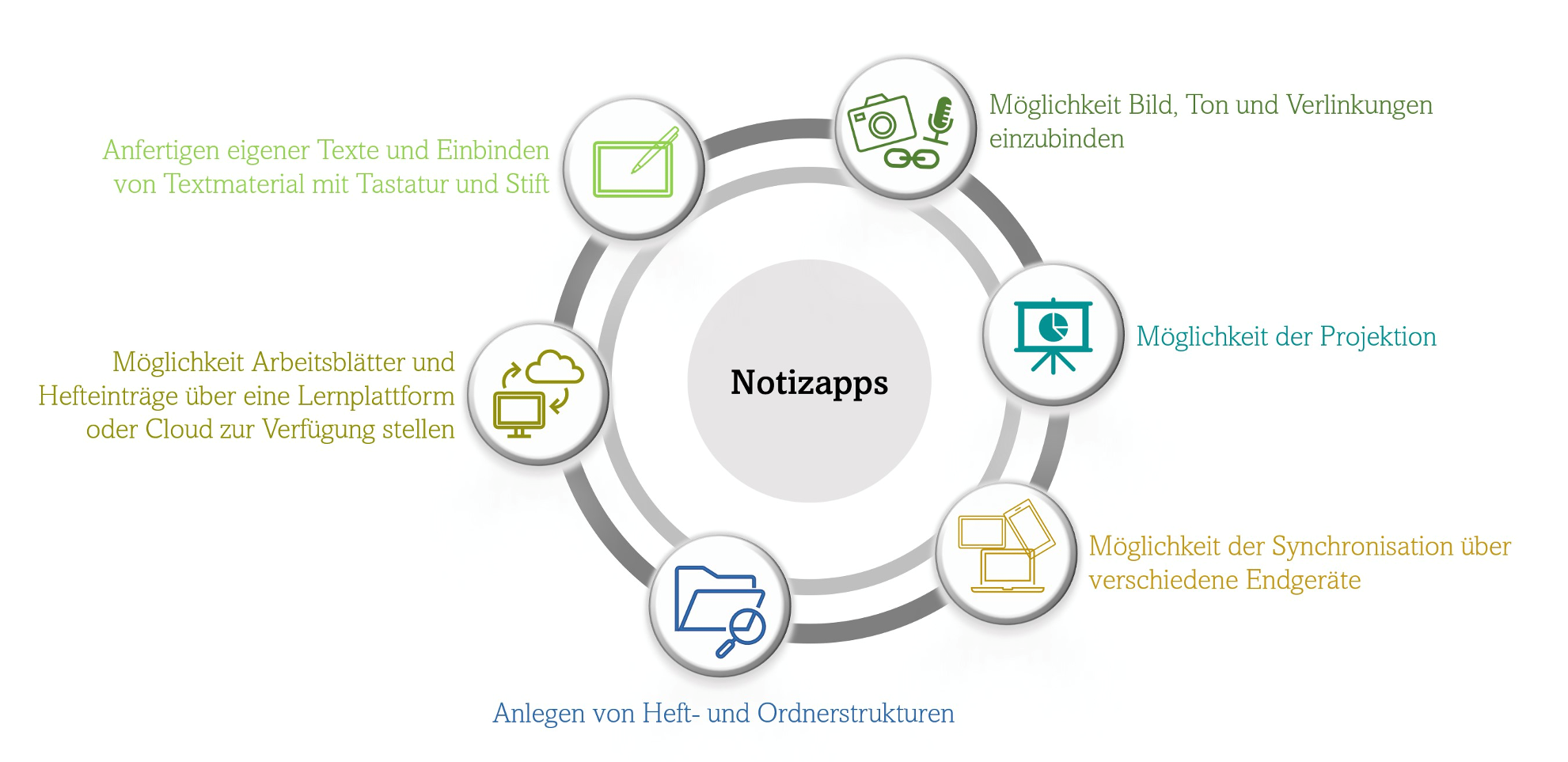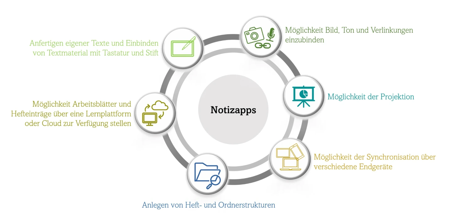 Die Schülerinnen und Schüler erhalten dabei Unterstützung bei der Einrichtung des digitalen Hefts und lernen die Möglichkeiten der digitalen Heftführung kennen. Dabei sind je nach Jahrgangsstufe die unterschiedlich stark ausgeprägten Niveaus der Medienkompetenz zu berücksichtigen.
