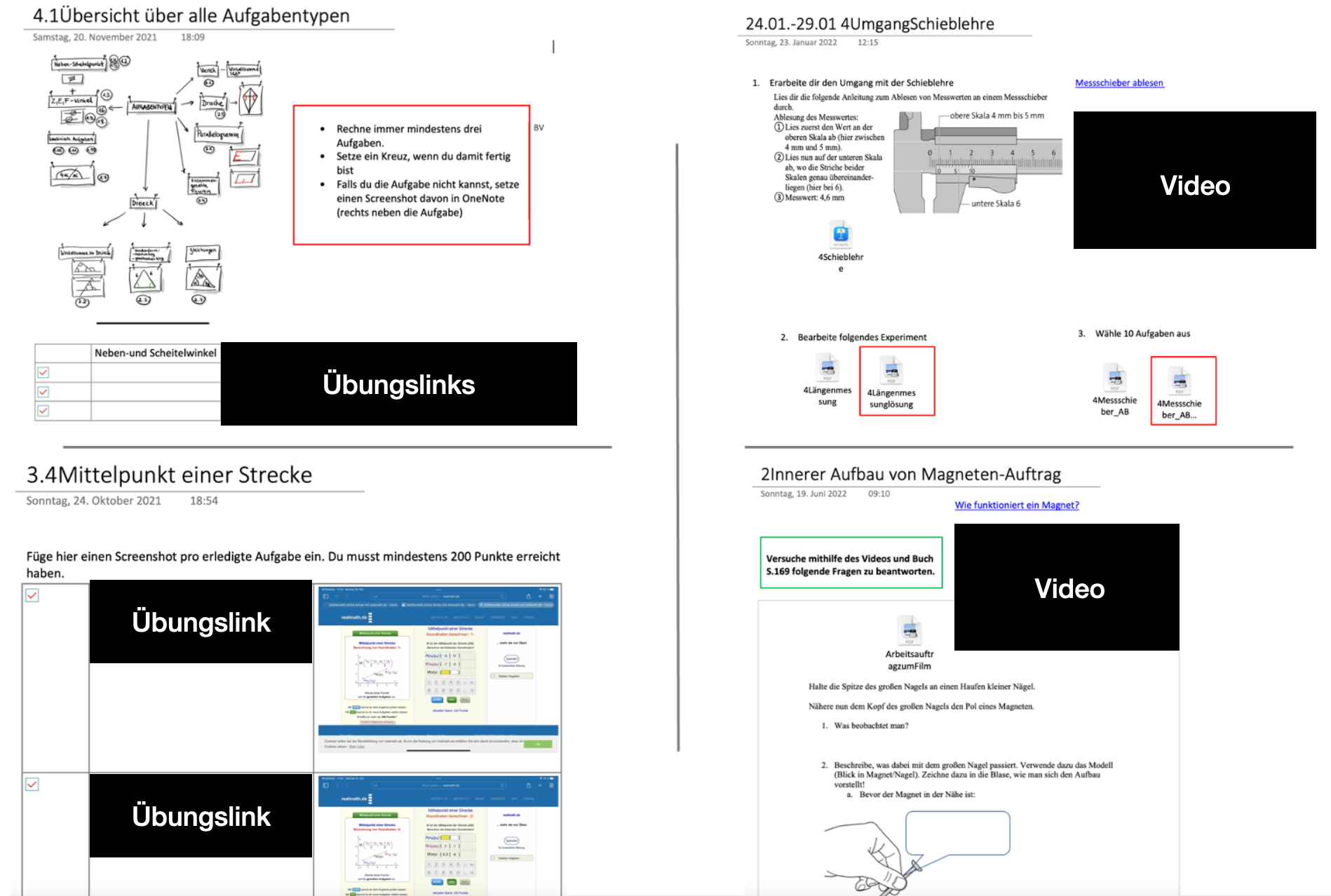 Die technische Ausstattung im 1:1-Setting eröffnet den Schülerinnen und Schülern eine Vielzahl an Möglichkeiten, ihre Unterrichtsdokumentation ansprechend zu gestalten. Dabei sollte aber die Schulung grundlegender instrumenteller Fertigkeiten wie das Zeichnen, Messen oder Konstruieren nicht vergessen werden. Das digitale Heft kann hier als Ergänzung und nicht als vollständiger Ersatz der analogen Unterrichtdokumentation eingesetzt werden. So können beispielsweise geometrische Zeichnungen oder Prozesse mit klassischen Hilfsmitteln angefertigt und dann als Foto in das digitale Heft mit eingepflegt werden.