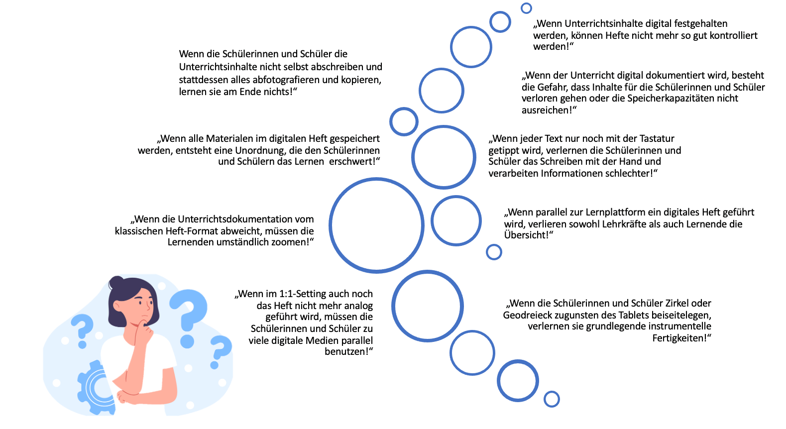 Damit das digitale Heft lernwirksam genutzt werden kann und sich sein Potenzial voll entfalten kann, müssen sich Lehrkräfte auch mit möglichen Stolpersteinen beschäftigen, die sich im Zuge der digitalen Heftführung ergeben können