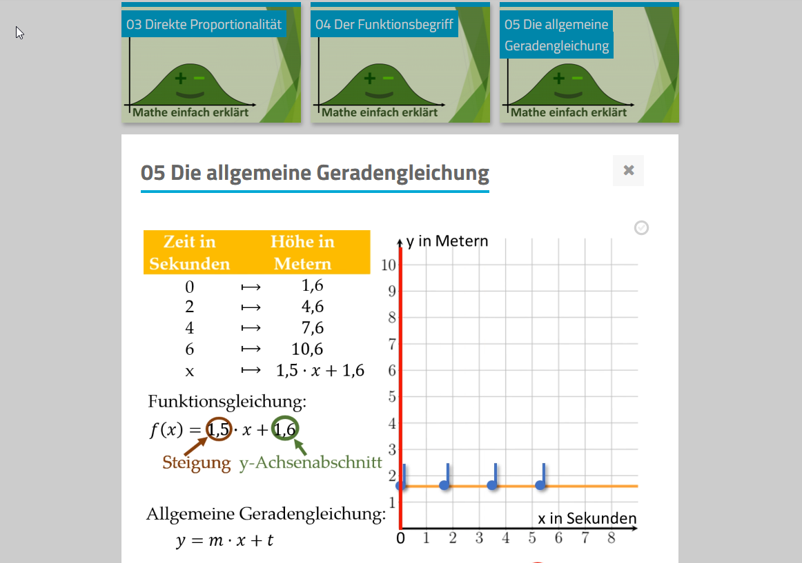 Der teachSHARE-Kurs „Lineare Funktionen (komplettes Paket)” behandelt das Thema „Lineare Funktionen“ vollumfänglich gemäß dem Lehrplan.