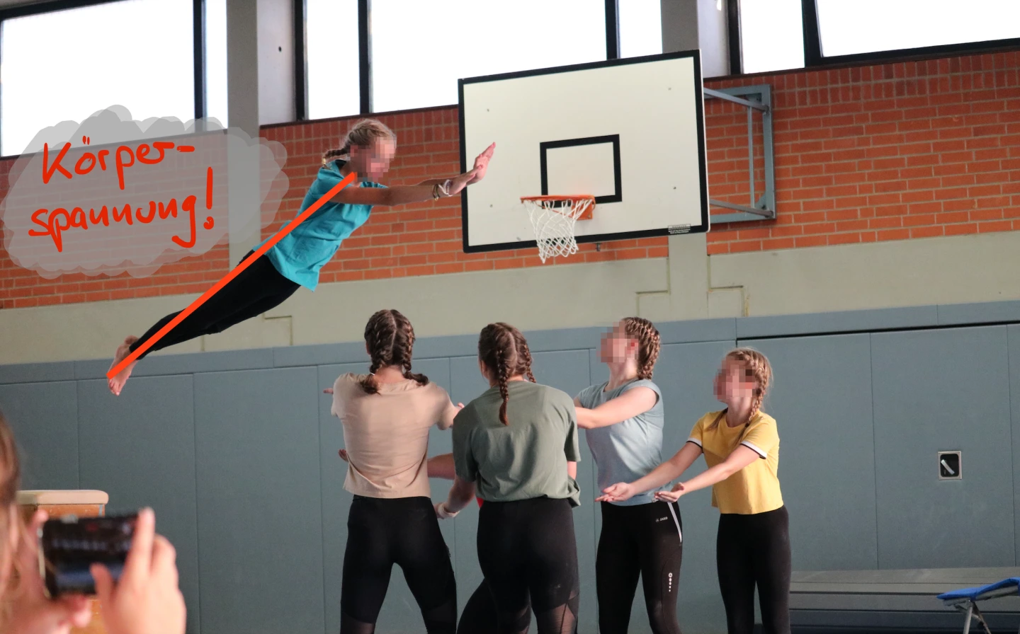 Zudem kann das außerunterrichtliche Engagement von Schülerinnen und Schülern honoriert werden, wenn diese eine Bewegung zu Hause üben und eine Aufnahme davon in die Schule mitbringen.