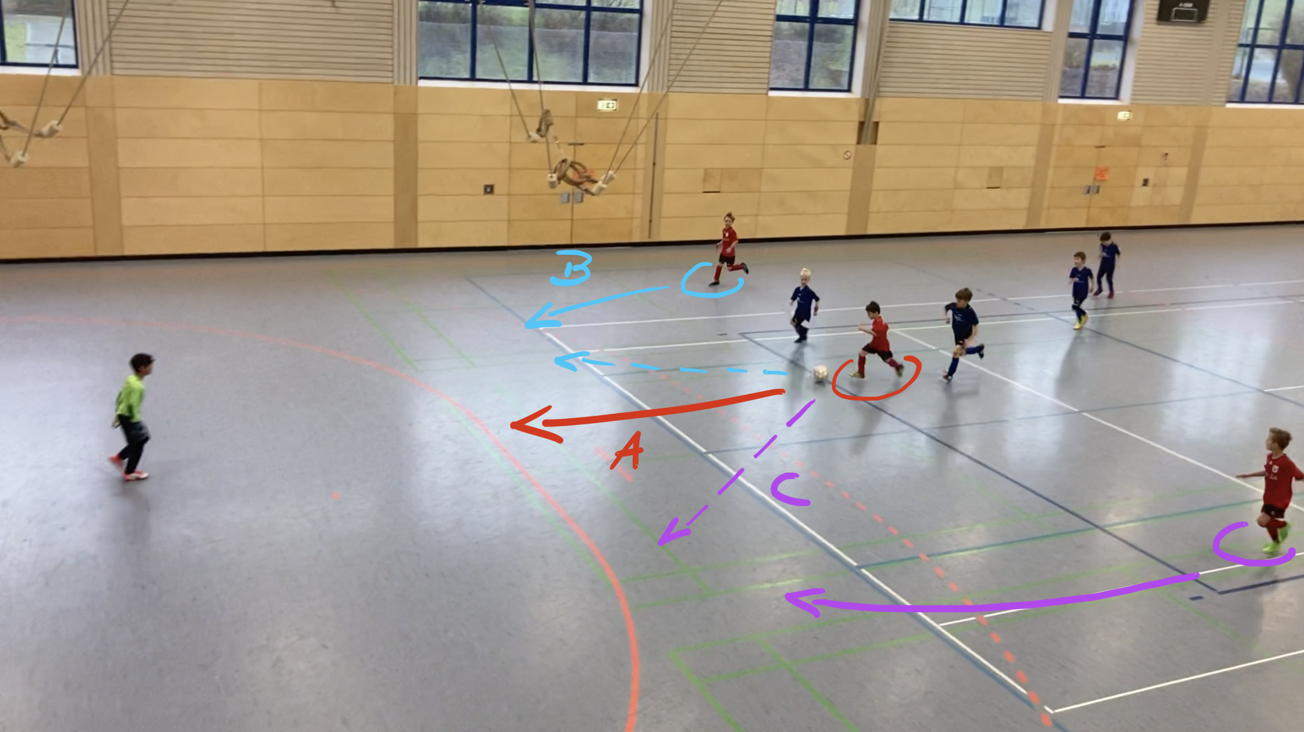 Schulung des fünffachen Blicks (Ball, Gegenspieler, Mitspieler, Freiraum, Torwart)