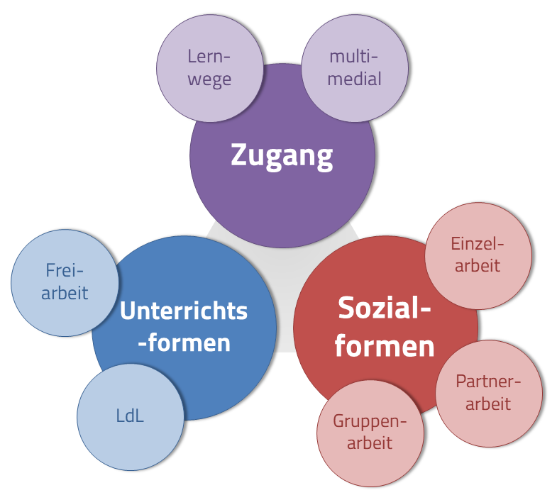 Das Angebot verschiedener Lernwege lässt sich mit digitalen Medien besonders gut umsetzen, weil digitale Geräte multimediale Repräsentationen von Inhalten ermöglichen: Je nach Vorliebe der Schülerinnen und Schüler können Inhalte beispielsweise auditiv oder visuell präsentiert werden. Das Zulassen unterschiedlicher Zugangsweisen unterstützt sie gleichzeitig dabei, eigene Lernwege zu entdecken.