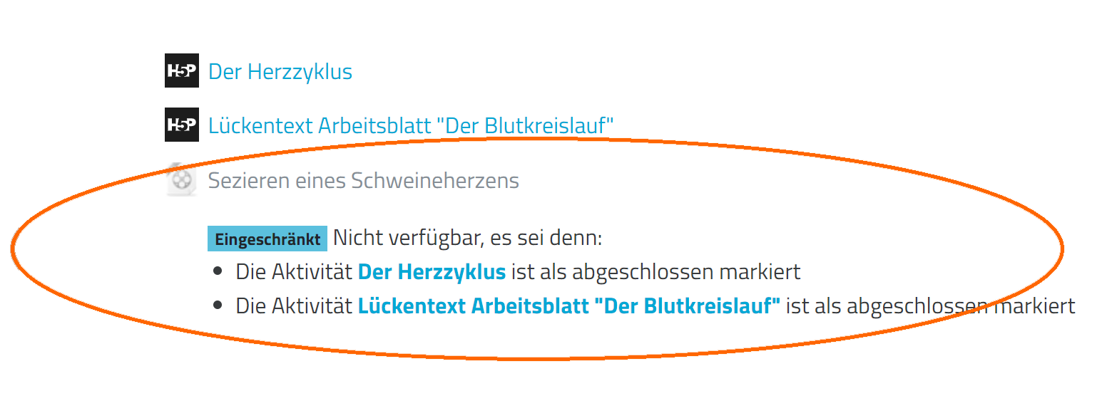 Solche Zusatzaufgaben lassen sich in der mebis Lernplattform über die Bedingte Verfügbarkeit umsetzen: Die Zusatzaufgaben werden freigeschaltet, sobald die Pflichtaufgaben erfüllt wurden.