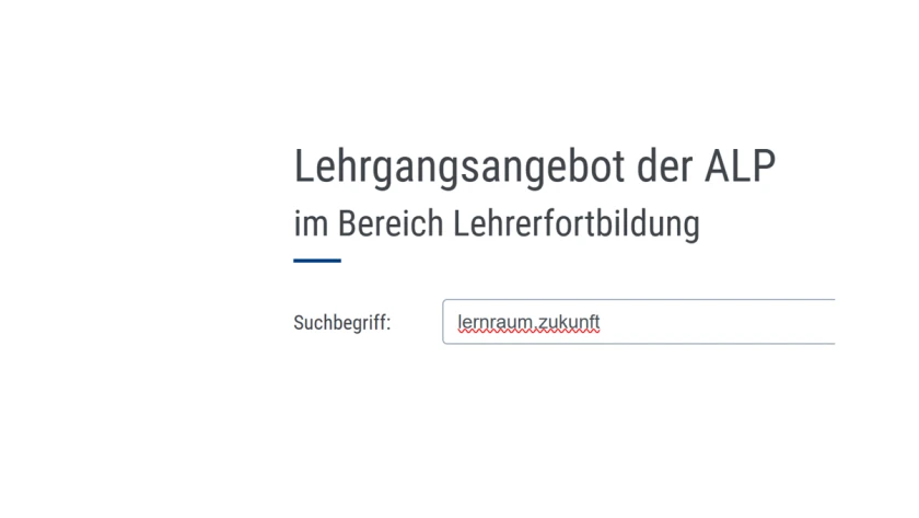 Der lernraum.zukunft kann in Fortbildungen an der ALP Dilligen erlebt werden. Suchen Sie dazu mit dem Schlagwort „lernraum.zukunft” in der Lehrgangsuche: