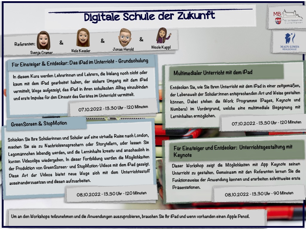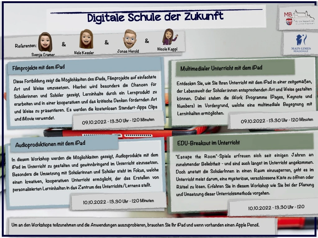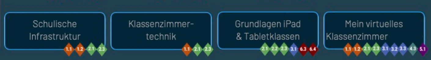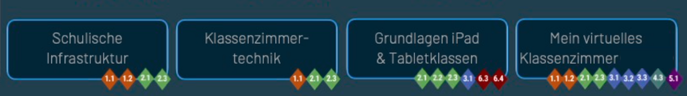 Für die praktische Umsetzung des selbstgesteuerten Lernens ergaben sich zur Vermittlung Voraussetzungen, in einer 1:1-Klasse unterrichten zu können. Diese verankern wir in wiederkehrenden Veranstaltungen.