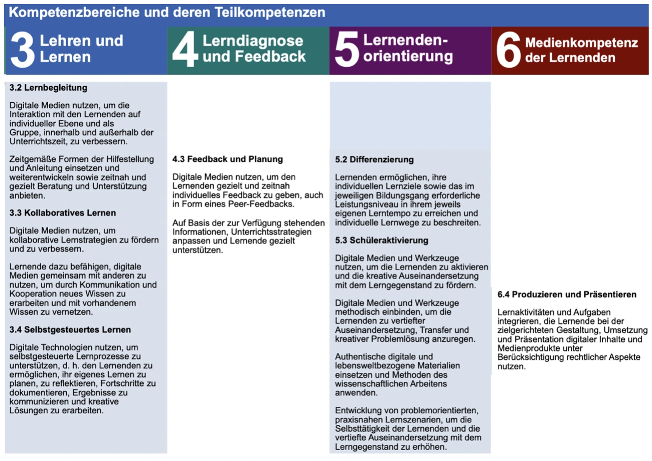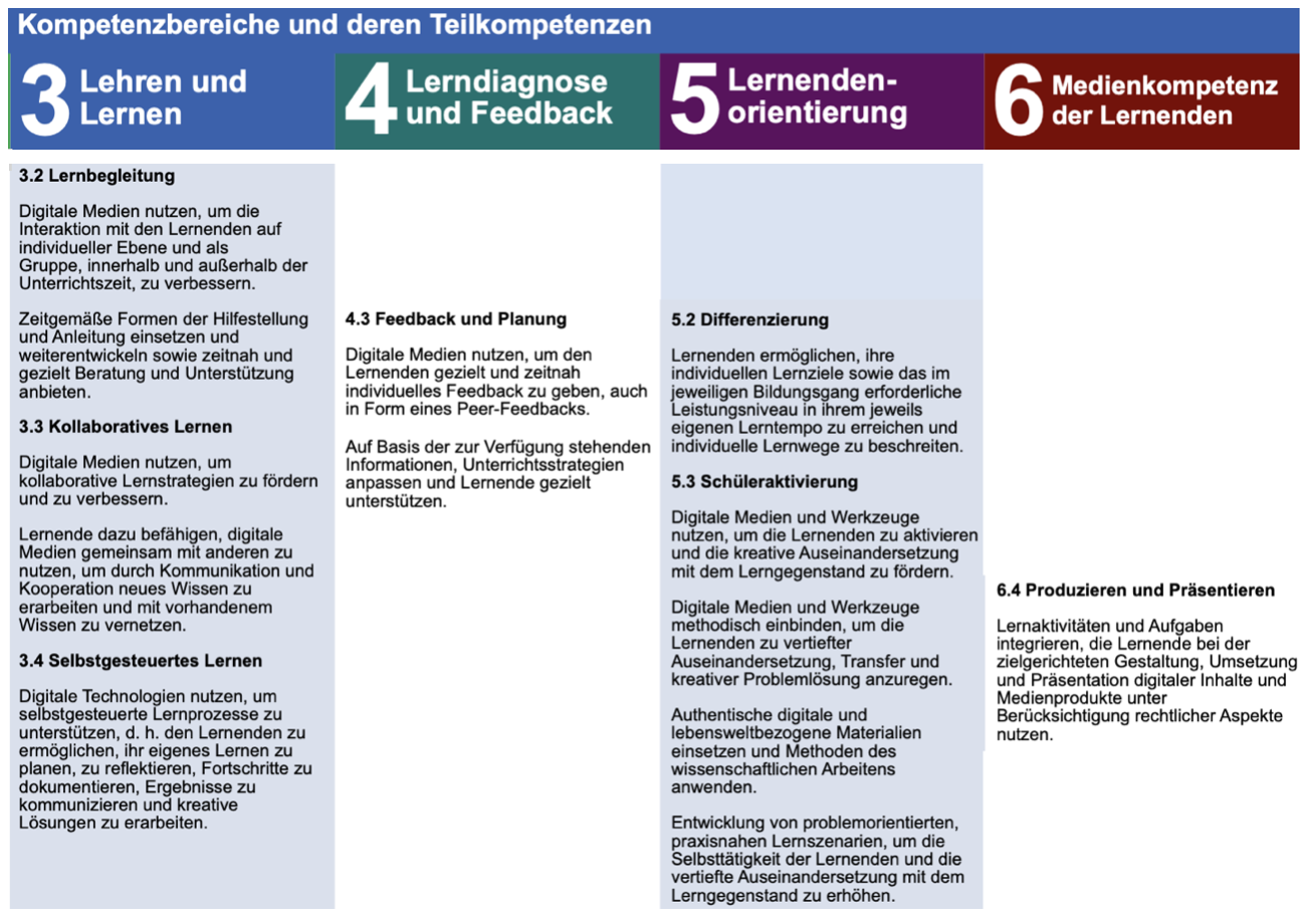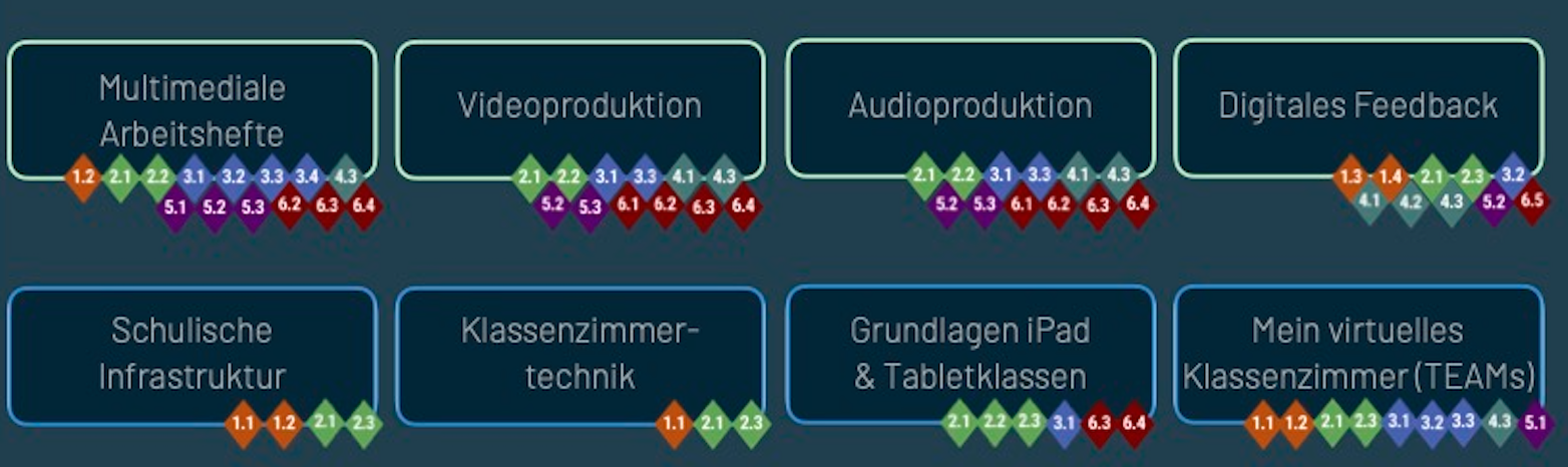 Für die praktische Umsetzung des selbstgesteuerten Lernens ergaben sich vier Themenfelder, in denen Aufbaukurse die Schwerpunkte aus dem DigCompEdu Bavaria abbilden sollen.