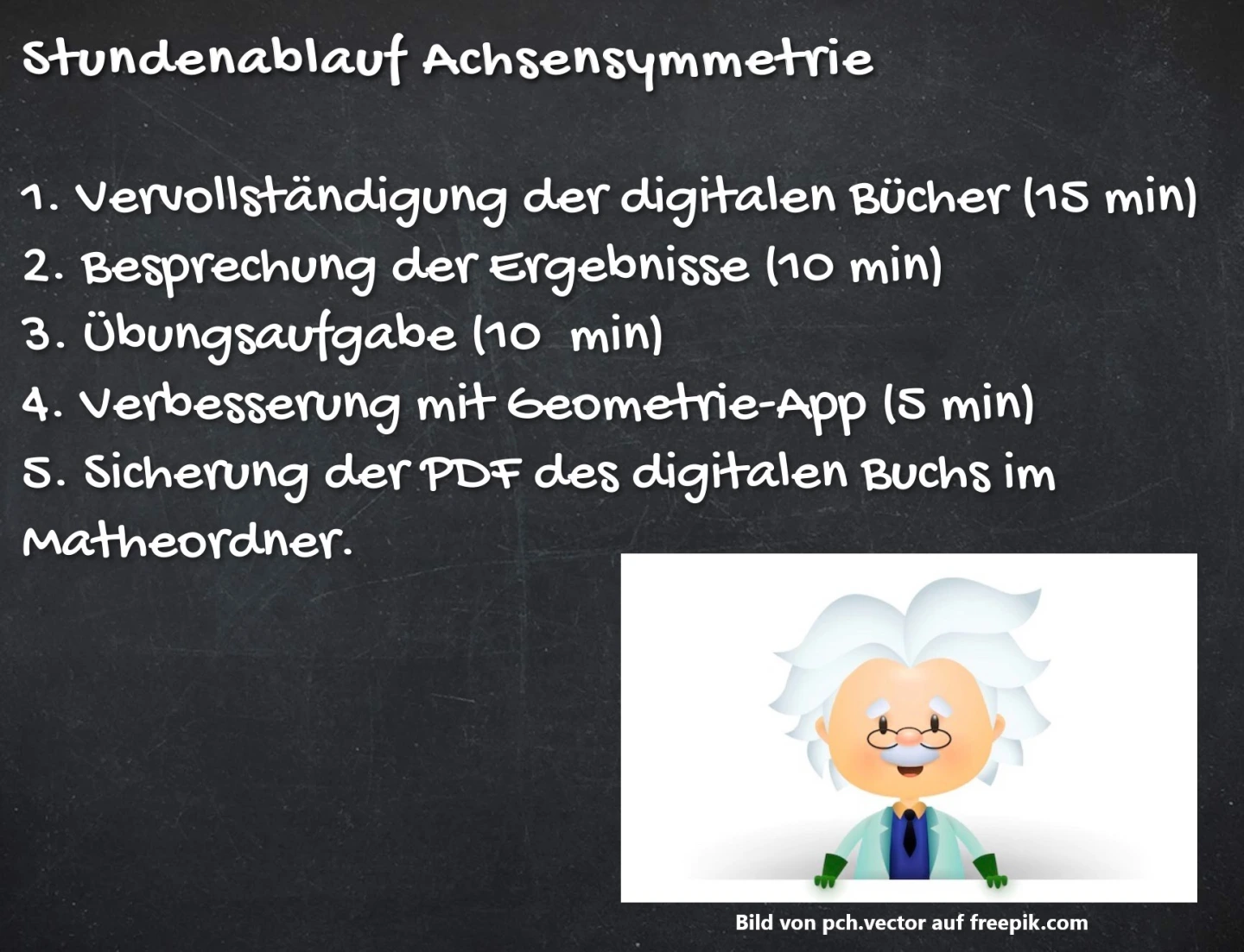 Die vorliegende Unterrichtseinheit thematisiert die Einführung der Achsenspiegelung. Selbstverständlich ist hier auch eine andere Thematik oder die Anwendung als Übung oder Sicherung möglich.