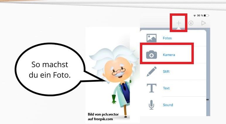 Werden von den Schülerinnen und Schülern verschiedene Arbeitsschritte bzw. die Anwendung von unterschiedlichen Menüpunkten erwartet, empfiehlt es sich, diese im Vorfeld zu besprechen. Hilfreich können auch Bilder sein, welche schrittweise erklären, wo die Tools zu finden sind.