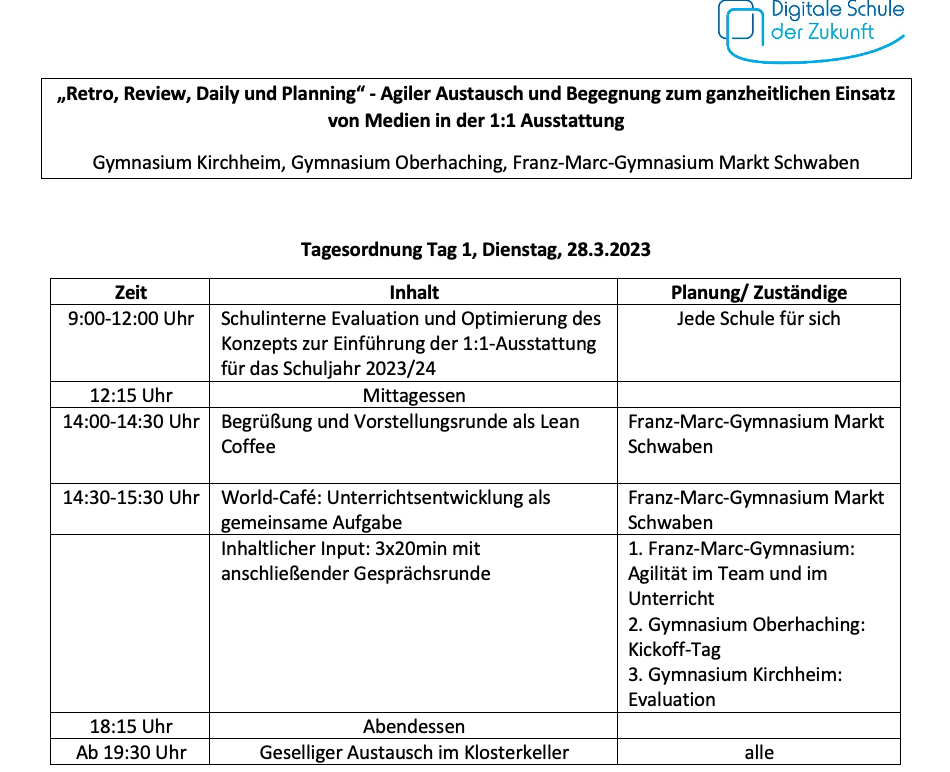 Überlegungen zur Organisation und Durchführung eines Vernetzungstreffen verschiedener Schulen im Bereich der digitalen Schulentwicklung