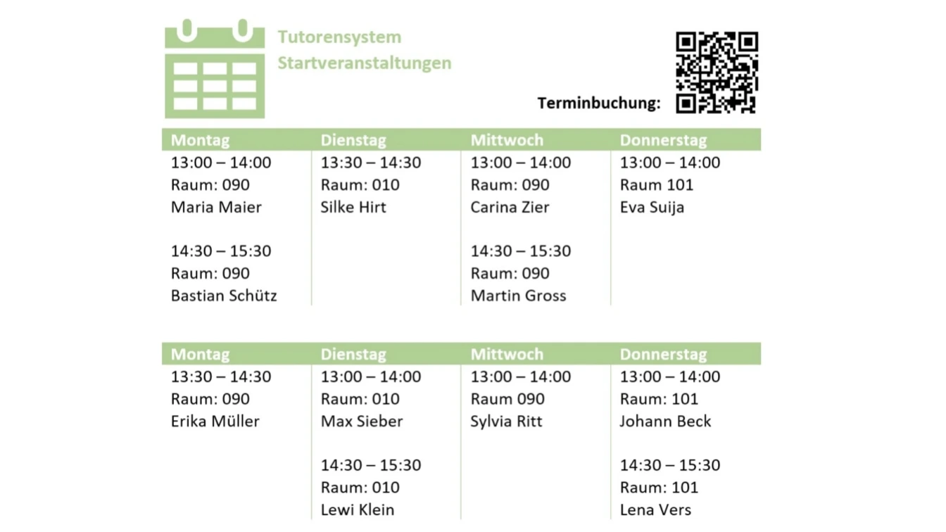 Zusätzlich führen die Tutorinnen bzw. Tutoren persönliche Gespräche mit ihren Tutees. Die Gespräche sind informell und sollen ein Stimmungsbild vermitteln.