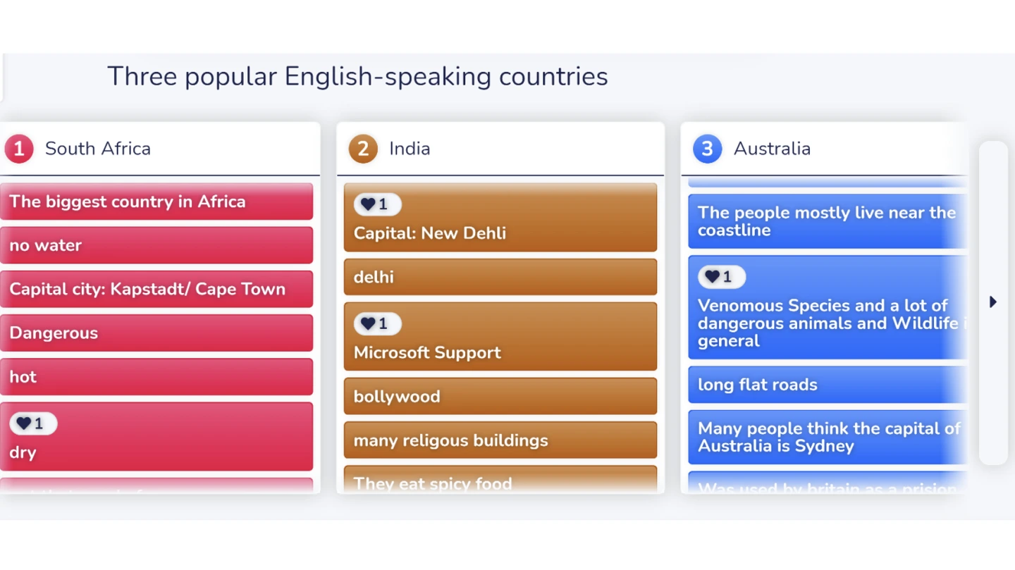 In Stufe 1 findet ein gemeinsames Brainstorming im Unterricht statt, bei dem die Ergebnisse digital gesammelt werden. Die Lehrkraft gibt dabei klare und präzise Arbeitsanweisungen an die gesamte Lerngruppe, steuert die Gesprächsführung und organisiert die Sicherung der Ergebnisse. Technisch ist die Form der Zusammenarbeit einfach gestaltet, da die Schülerinnen und Schüler beispielsweise durch einen QR-Code oder einen Link auf die Umfrageplattform gelangen.