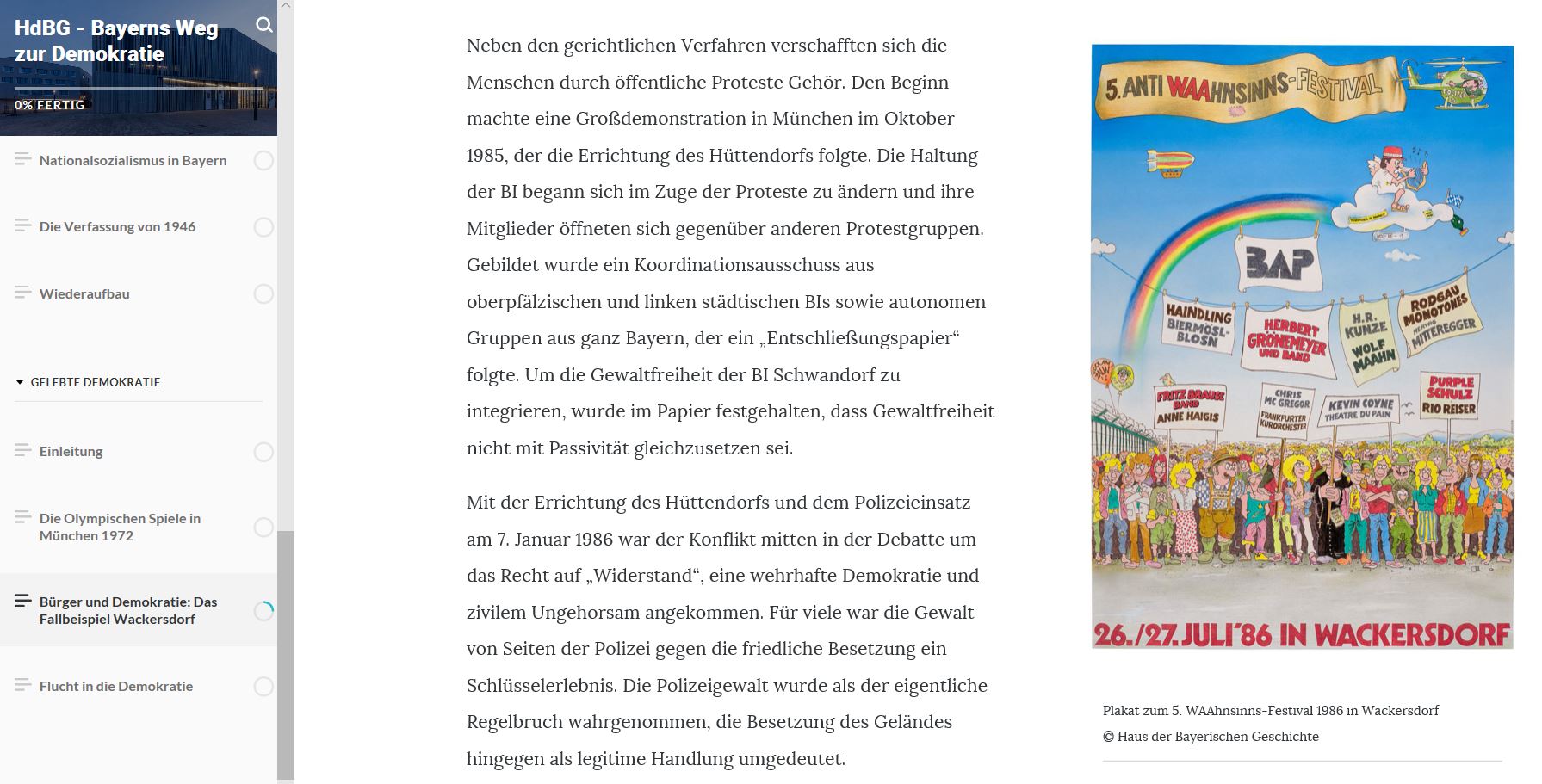 Ein umfassendes Kennenlernen der Dauerausstellung „Wie Bayern Freistaat wurde und was ihn so besonders macht“ des Hauses der Bayerischen Geschichte in Regensburg ermöglicht der Selbstlernkurs „Das Haus der Bayerischen Geschichte. Ein Haus der Zukunft für die Geschichte der Gegenwart“. Der Lehrgang wurde in Zusammenarbeit mit der Akademie für Lehrerfortbildung und Personalführung in Dillingen erarbeitet und setzt auf Multiperspektivität. Er gliedert sich in die drei Bücher „Weg zur Demokratie“, „Familiengeschichten“ und „Kulturkabinette“. Anhand ausgewählter Themen und anschaulicher Quellen können Sie die Dauerausstellung in Regensburg erkunden und Ihr Wissen zur bayerischen Geschichte anhand von spezifischen Fragestellungen vertiefen. Quizzes, Zeitzeugeninterviews und Filme gestalten das E-Learning abwechslungsreich. Darüber hinaus erhalten Sie Anregungen für Ihren Unterricht. Aufgabenstellungen und zahlreiche Links unterstützen Sie dabei.