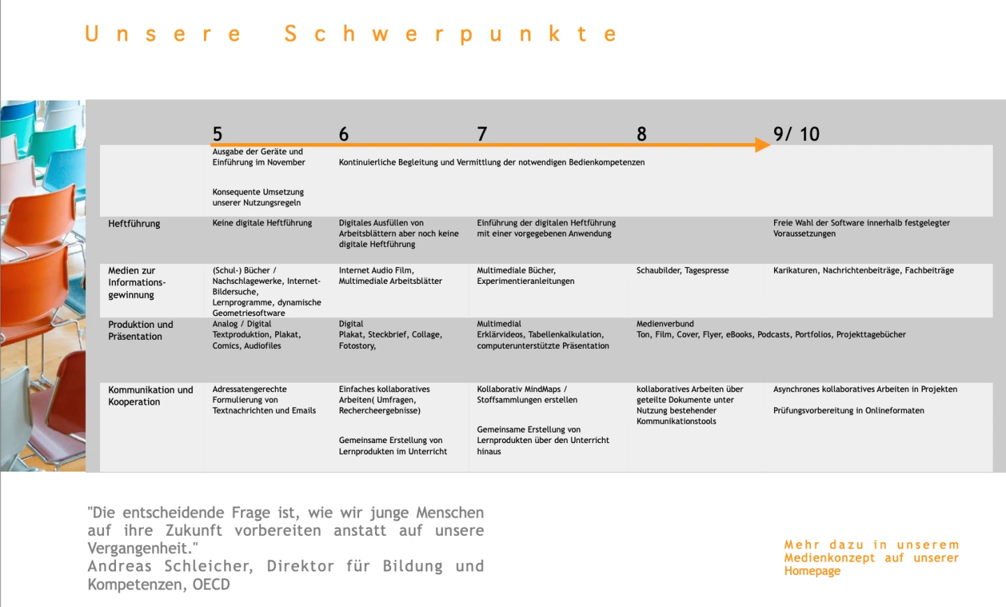 „Bei der Verwendung digitaler Hefte konzentrieren wir uns auf spezielle Fächer, in denen wir in der 5. Jahrgangsstufe versuchen, sinnvolle Unterrichtssequenzen digital zu dokumentieren.”