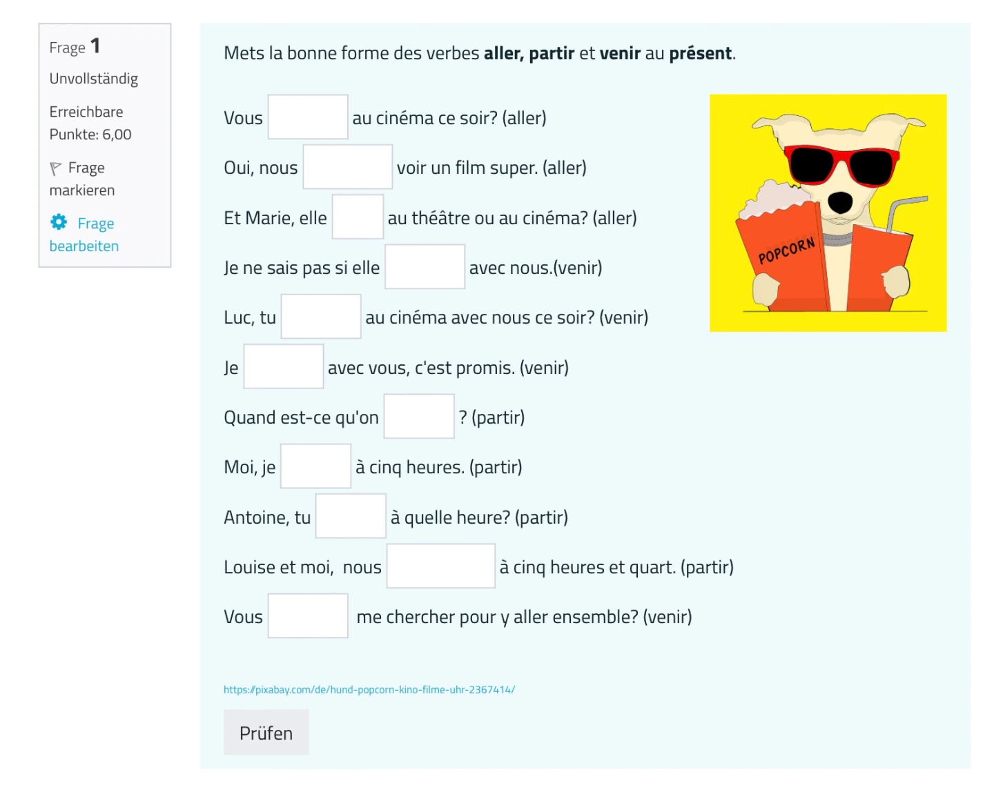 Vor diesem Hintergrund fand sich in Niederbayern 2014 eine Projektgruppe zusammen, die sich zum Ziel gesetzt hat, Themen der französischen Grammatik für die Lernplattform aufzubereiten. Das Urheberrecht ist in den Kursräumen berücksichtigt. Die Lizenzierung erfolgt unter Creative Commons „Namensnennung – Nicht kommerziell - Keine Bearbeitungen 4.0" (BY-SA).