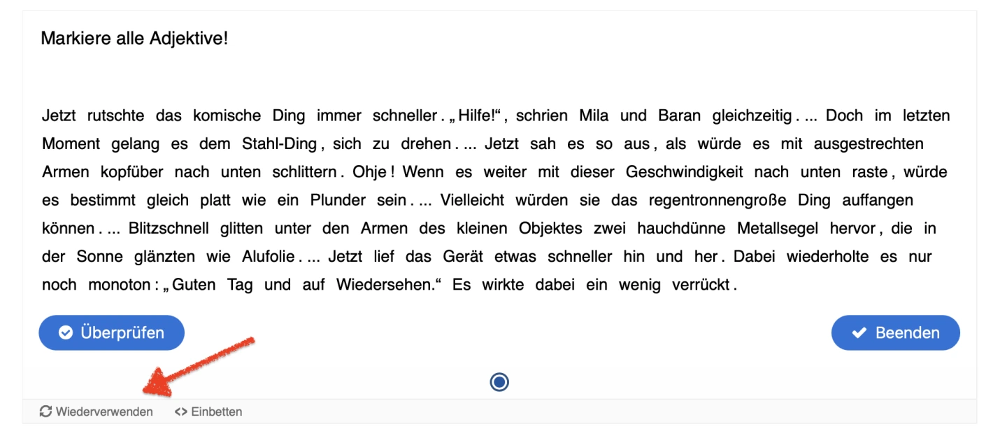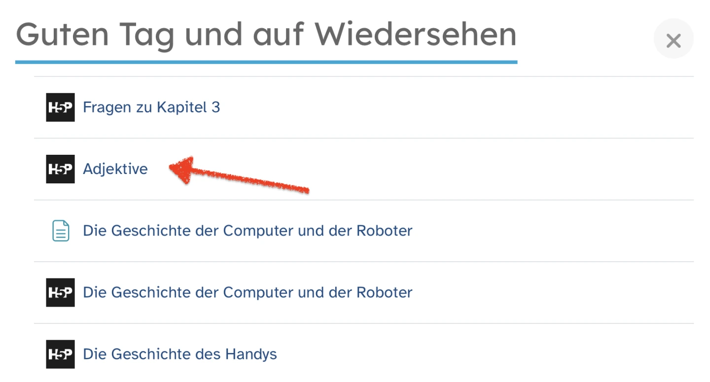 Gehen Sie jetzt auf den zu kopierenden H5P-Inhalt, hier zum Beispiel der Inhalt „Adjektive”: