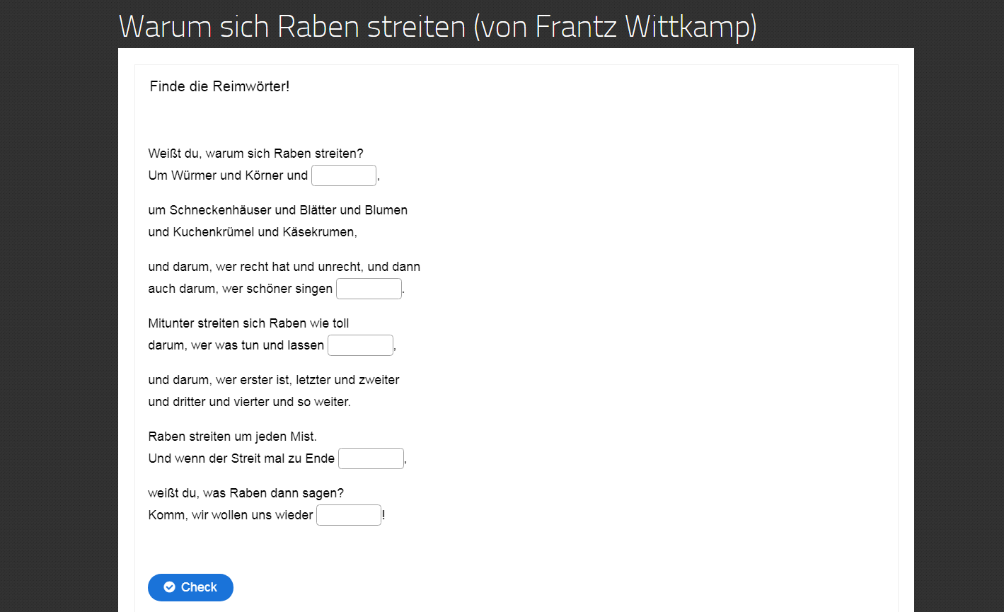 Warum sich Raben streiten (von Frantz Wittkamp): Reimwörter finden (H5P)