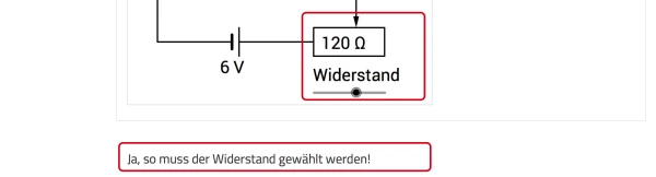 Nach dem Abschließen und Auswerten des Tests erhält die Schülerin oder der Schüler das festgelegte Feedback. Im Bild oben sehen Sie ein beispielhaftes Feedback bei korrekter Bearbeitung.