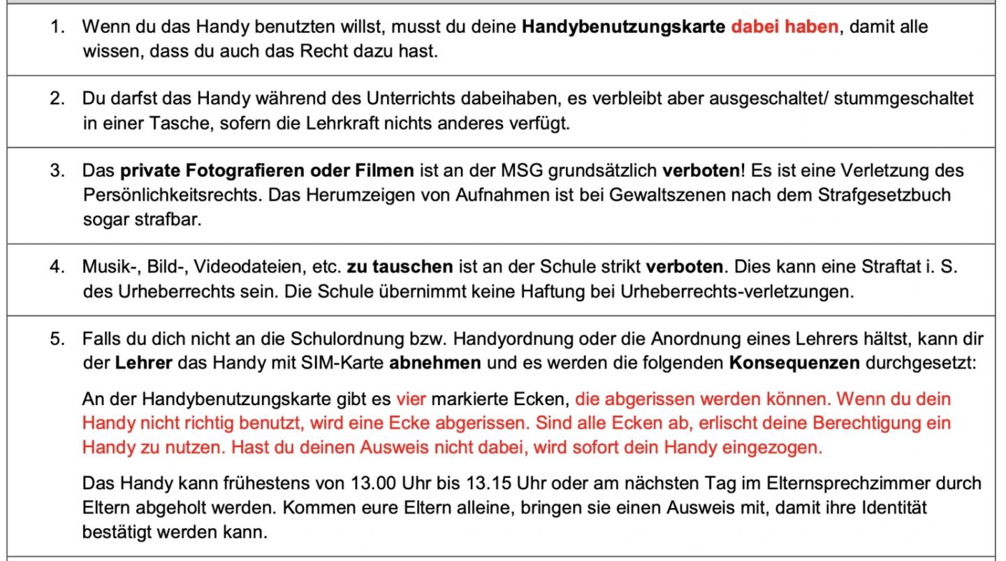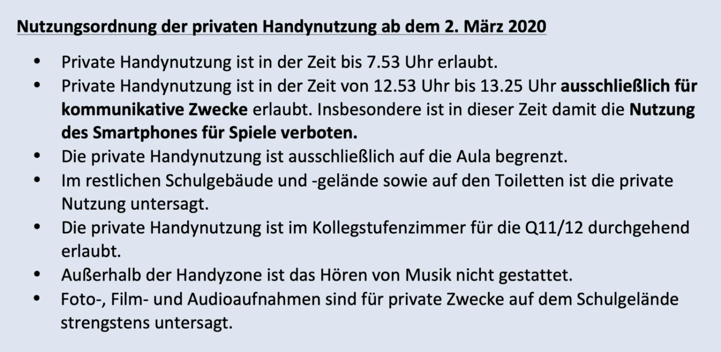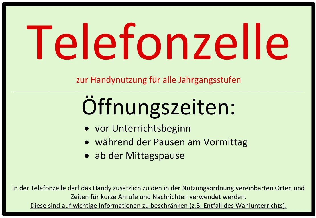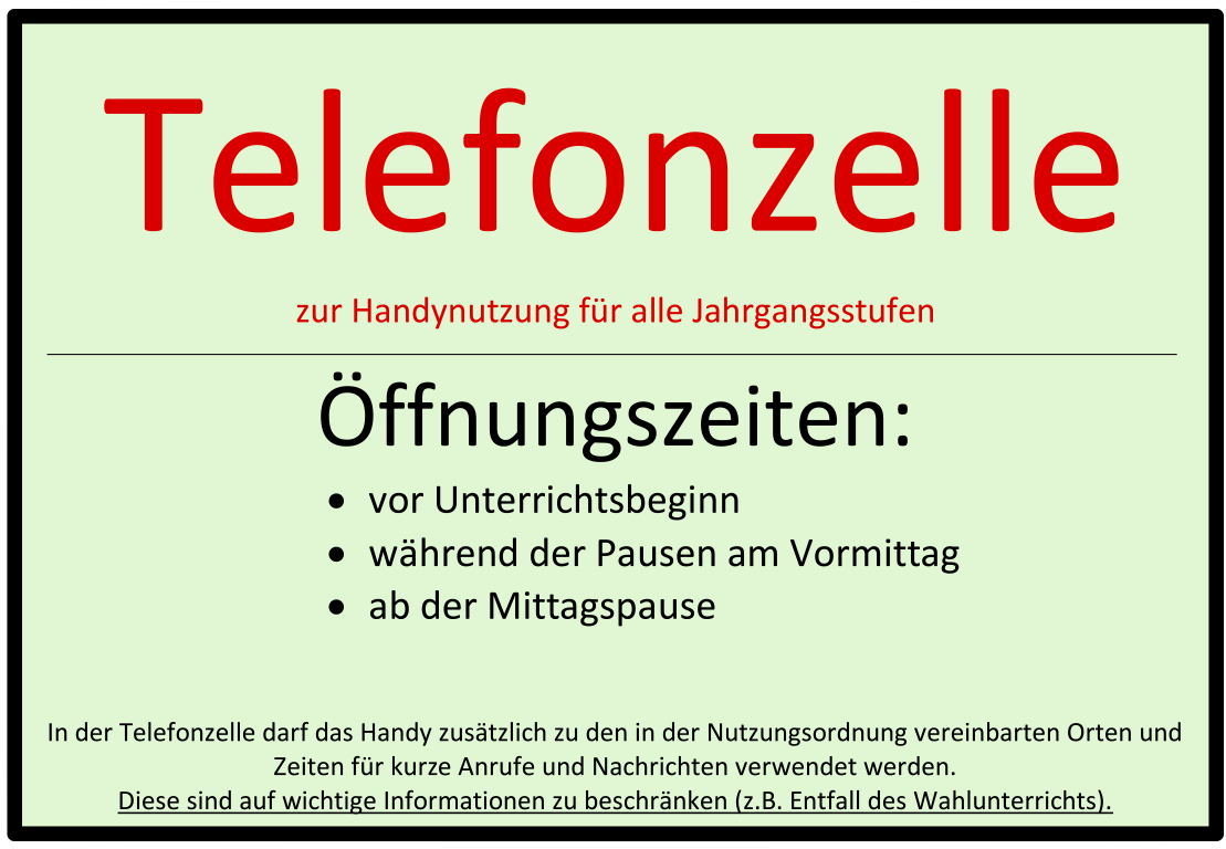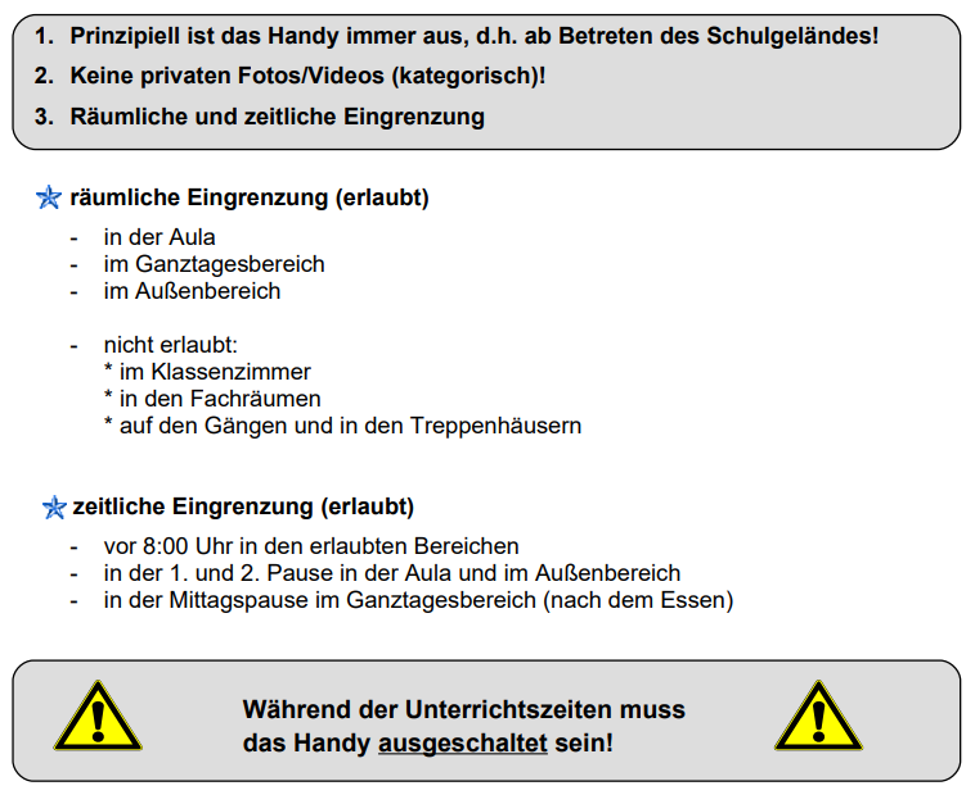 Handyzone: „Hier darf das Handy jederzeit, außerhalb des Unterrichts, genutzt werden […].“