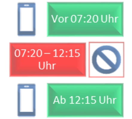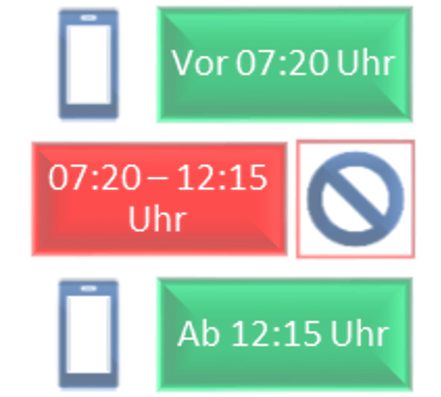 Selbstverantwortliche Zone: Hier „darf das Handy kurz (ca. 30 Sekunden)“ genutzt werden, um z. B. auf die Uhr zu schauen oder Nachrichten und Termine zu checken.