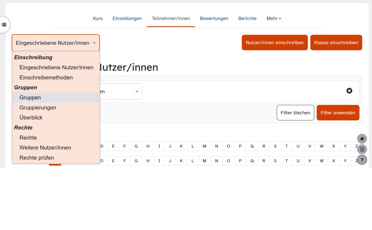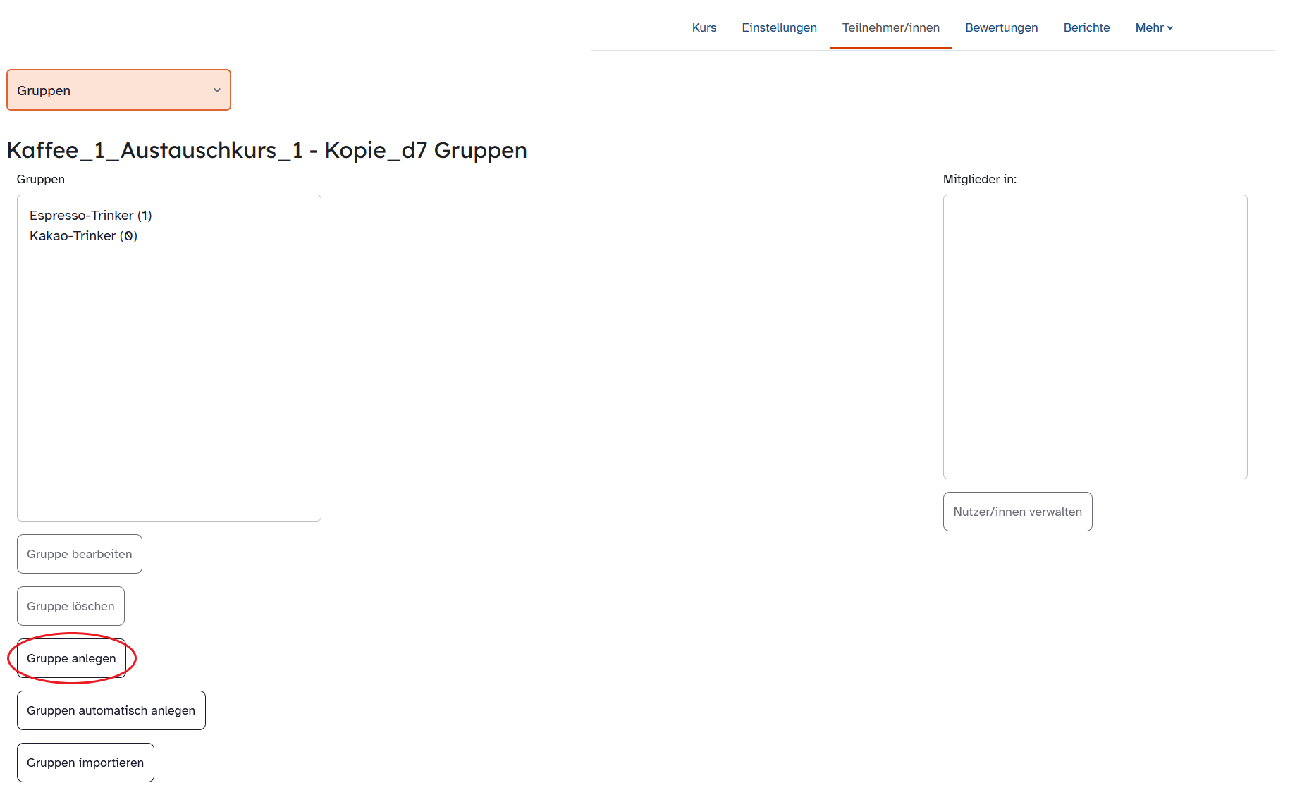 Gruppenzuteilungen, auf deren Basis ein mebis Kurs eingerichtet wird