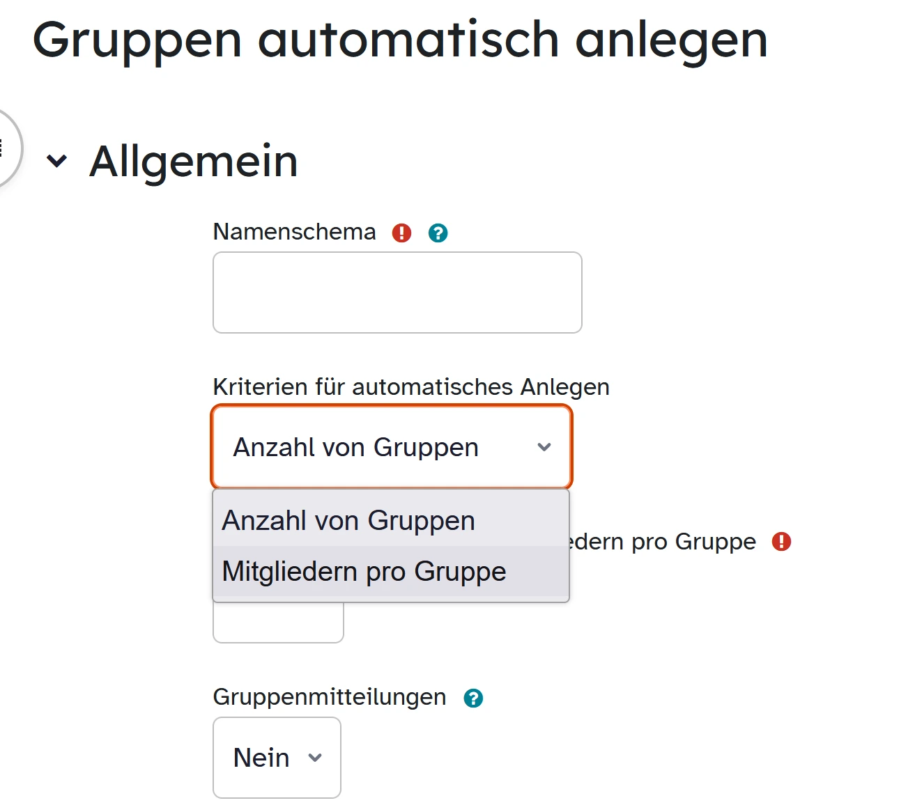 Hinweis: Es ist nicht innerhalb aller Aktivitäten möglich, Gruppen einzurichten. Beispielsweise ist diese Funktion nicht für das Glossar, die Lektion oder das Lernpaket verfügbar.