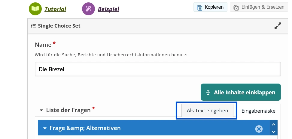 Bei allen Aktivitäten, bei denen ein Textfeld zur Verfügung steht - insbesondere also bei den Aktivitäten „Text-und Medienfeld”, „Textseite” und „Universelles Textfeld” ist es möglich, durch HTML-Codes H5P-Inhalte direkt in Textfelder einzubetten.